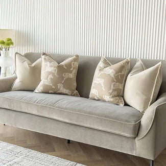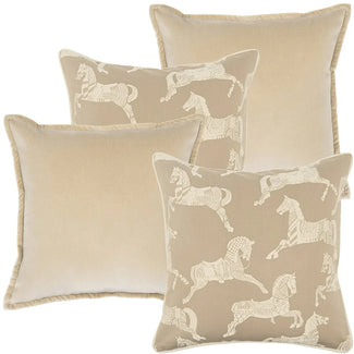 Подушки из нежно-бежевого бархата и сшитые в виде лошади