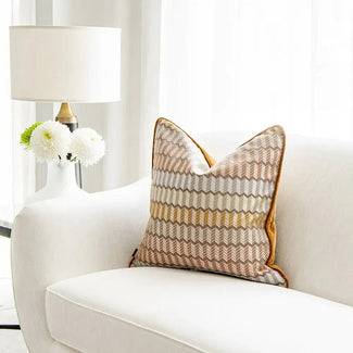 Бархатные коричневые подушки с узором в виде оптических изображений