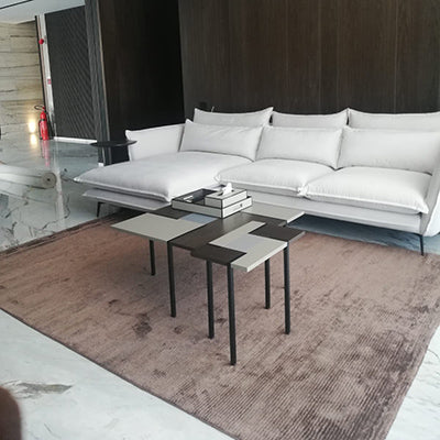 Современный дизайн Насыщенный цвет и текстурированные полосы создают универсальный ковер для современных интерьеров.