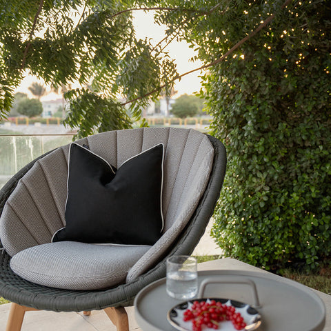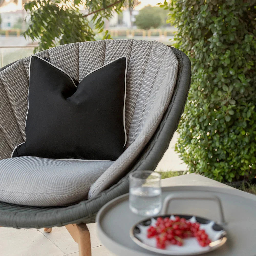 В глубоком черном цвете с контрастной окантовкой по всему периметру наша подушка Aelia Steele идеально подходит для оживления вашего летнего декора. Эта минималистская подушка идеально подходит как для использования в помещении, так и на улице.