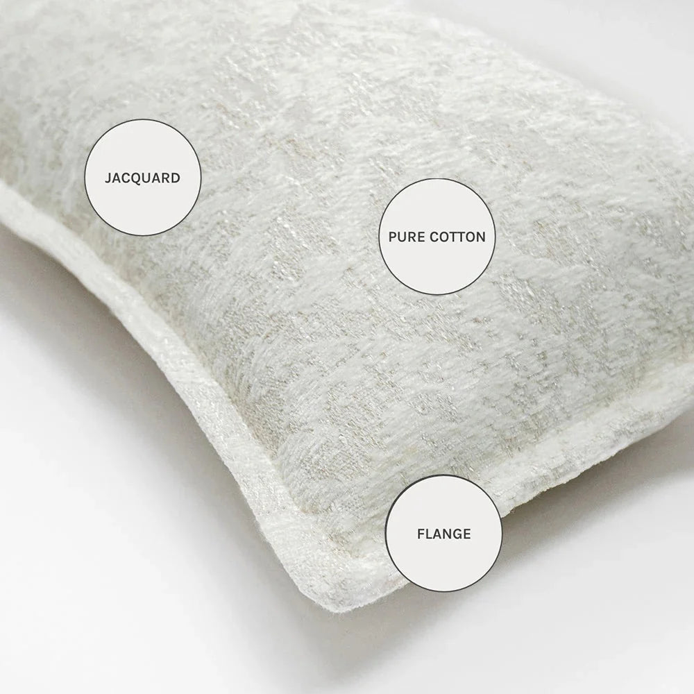 Украсьте свой дом нашей элегантной белой подушкой с шикарным жаккардовым узором в бело-серой гамме. Изготовленная из высококачественного хлопка, она отличается роскошной фактурной отделкой, которая добавит глубины любому помещению.