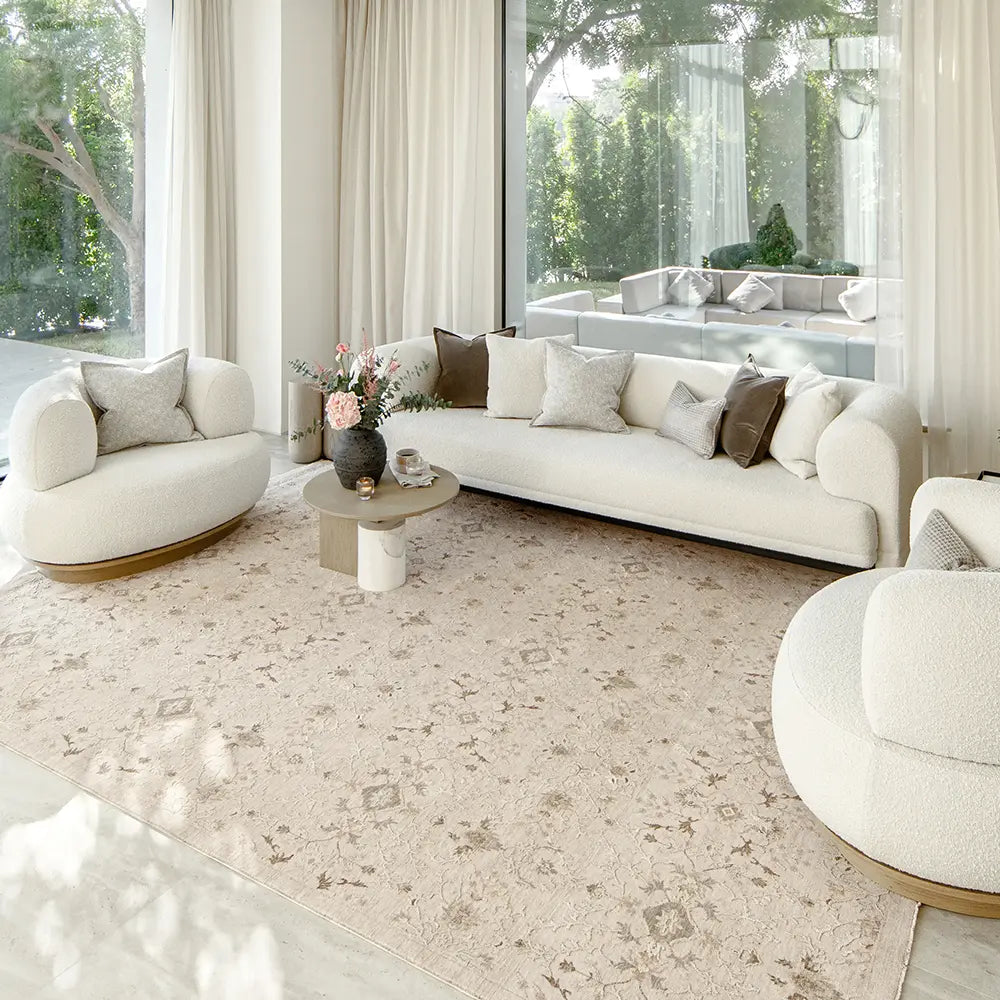 Классический дизайн сочетается с современной текстурой в этом универсальном ковре, который подойдет к любому стилю декора.