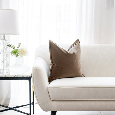 Эта бархатная подушка изысканного средне-коричневого оттенка благодаря своей мягкости привнесет ощущение роскоши как в современный, так и в традиционный интерьер.
