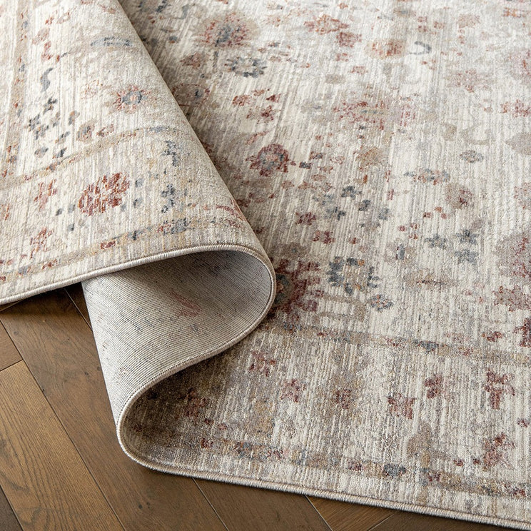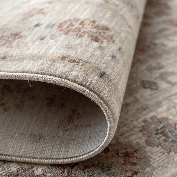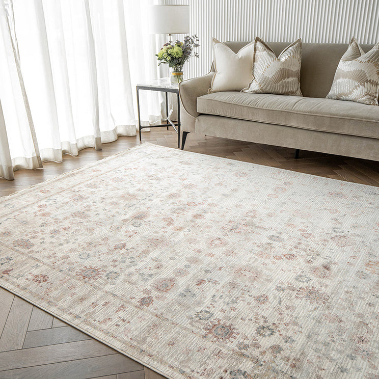 Этот ковер в винтажном стиле, намеренно выцветший для эстетики любовных потертостей, создает ощущение ручной работы.