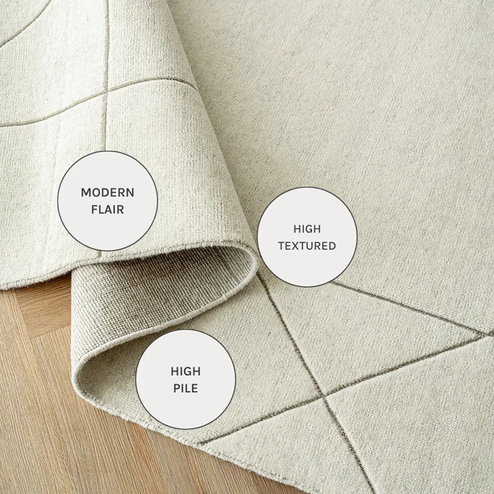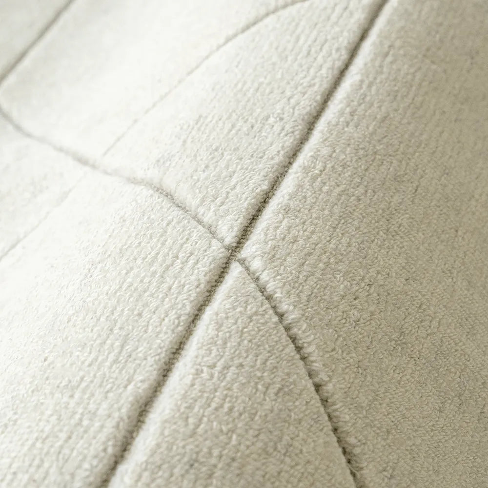 Этот серый и кремовый ковер искусно сочетает в себе современную эстетику с ощущением роскоши. Сделанный из шерсти, хлопка и бамбука, мягкий ковер имеет линии, вырезанные на ворсе, чтобы создать геометрический рисунок.