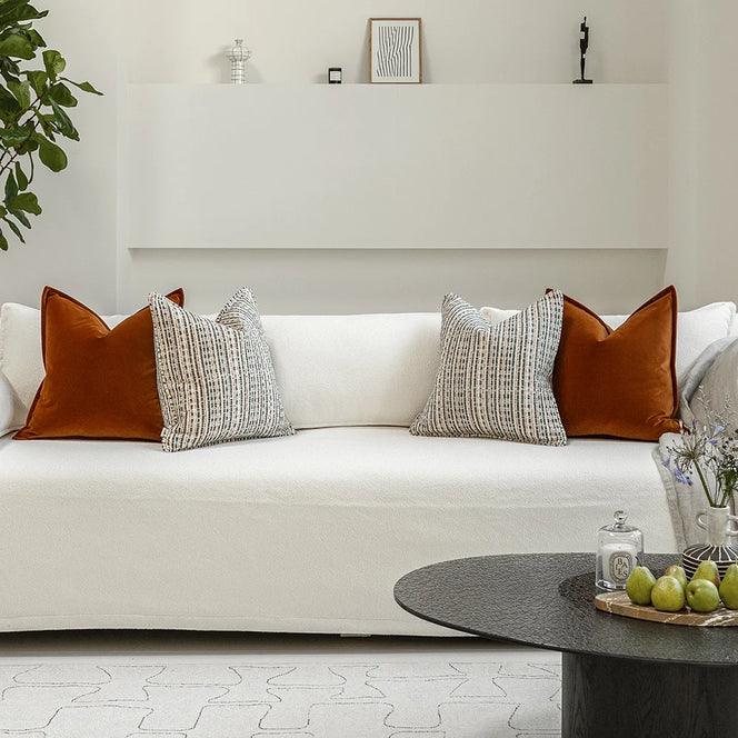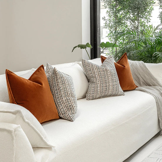Украсьте свой интерьер этим ярким набором подушек. Этот комплект из четырёх подушек включает две подушки из ржавого бархата и две подушки из жаккарда в тон, создавая дизайнерский образ.