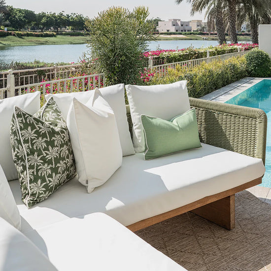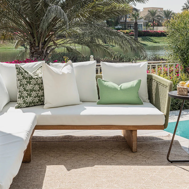 Устойчивые к погодным условиям подушки с наполнителем из волокна обеспечат комфорт и преобразят любое открытое пространство.