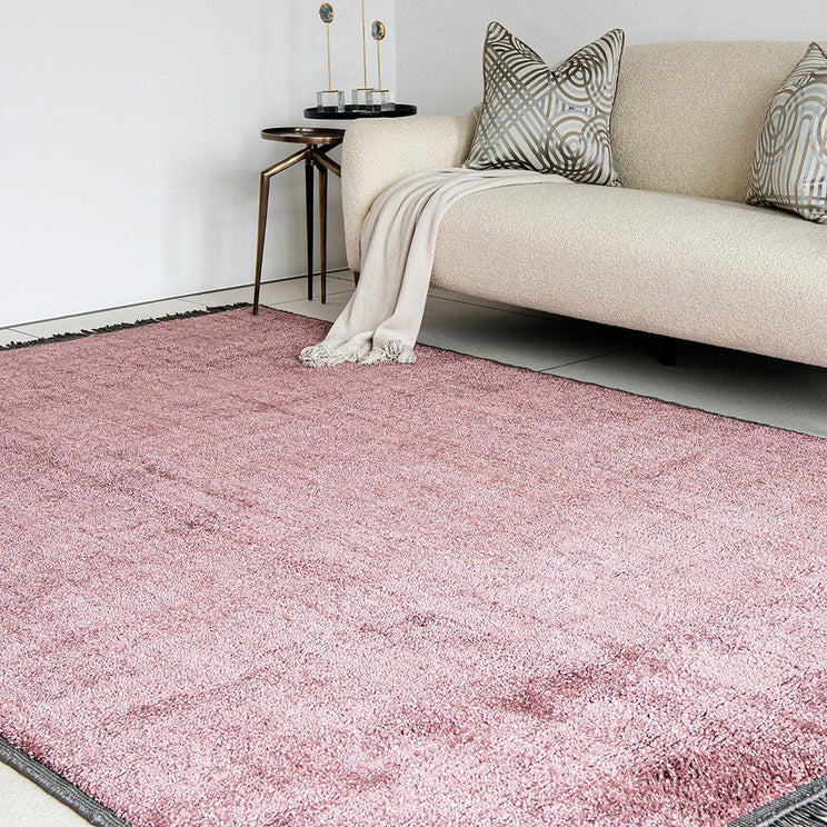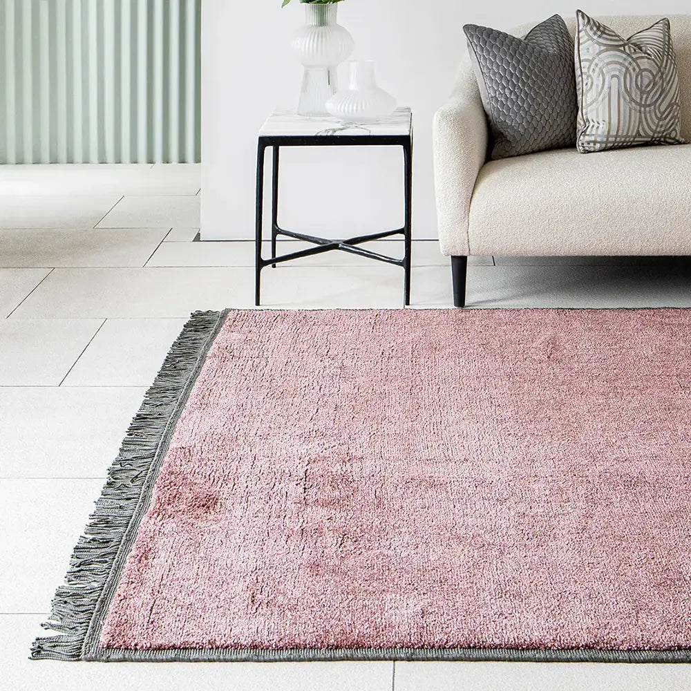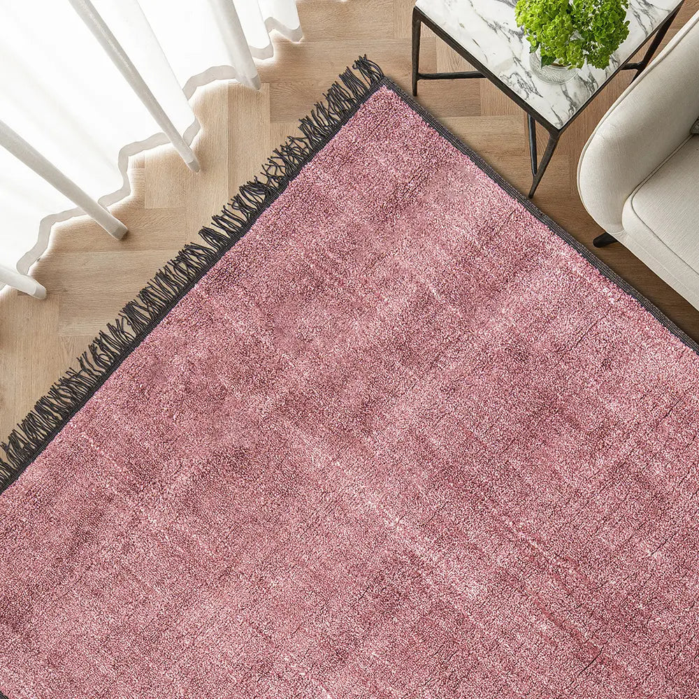 Этот современный ковер яркого розового оттенка с контрастной каймой станет настоящим украшением вашего дома.