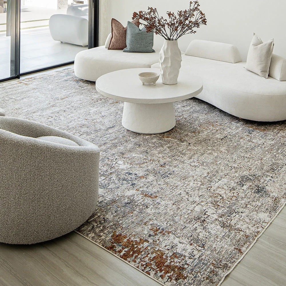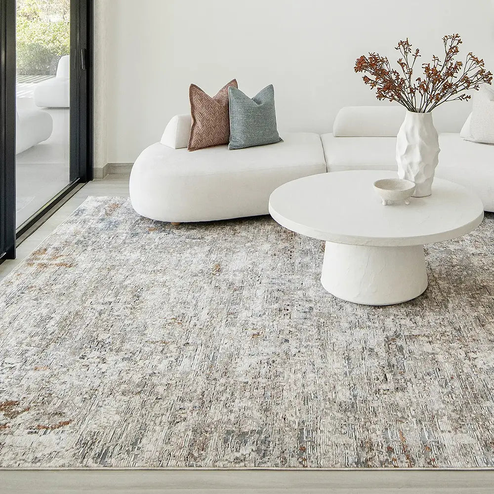 Этот выцветший ковер с призраком традиционного узора сверху обладает антикварным очарованием.