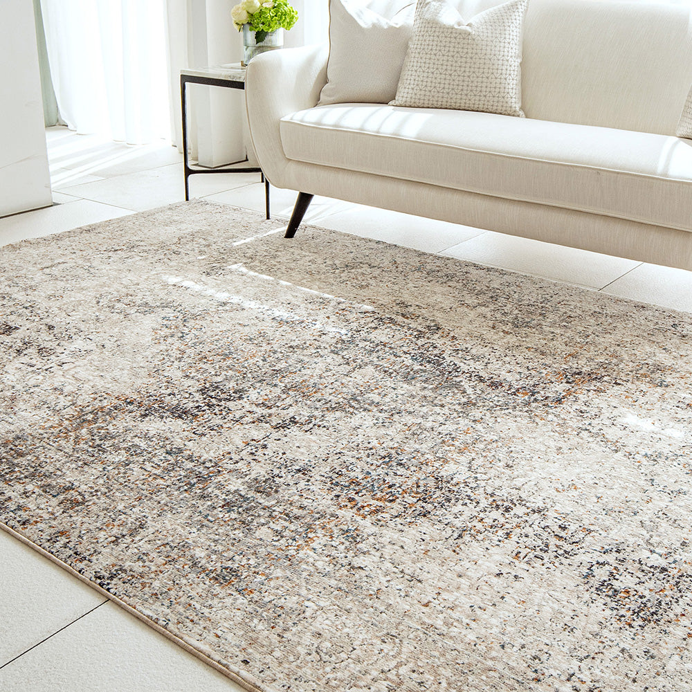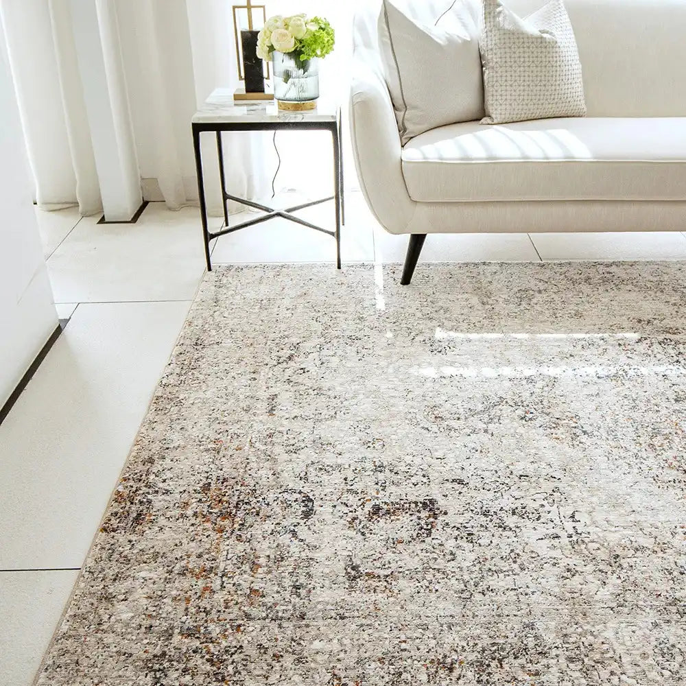 Этот выцветший ковер из нашей коллекции Ethan выполнен в сером и бежевом цвете и имеет намек на традиционный узор, придающий ему винтажный шарм.
