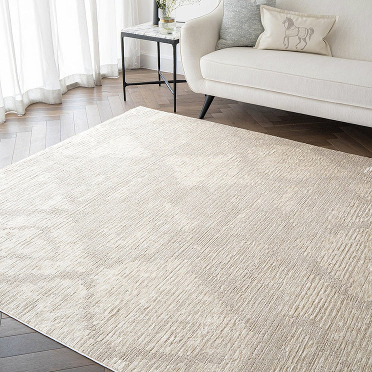 Этот нейтральный ковер изготовлен из шелковистых волокон, которые придают изысканный блеск и украсят любую комнату.