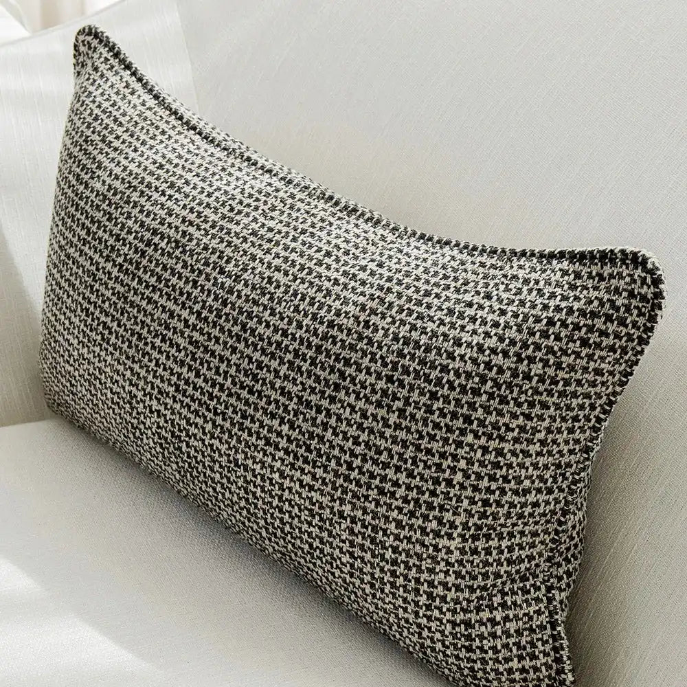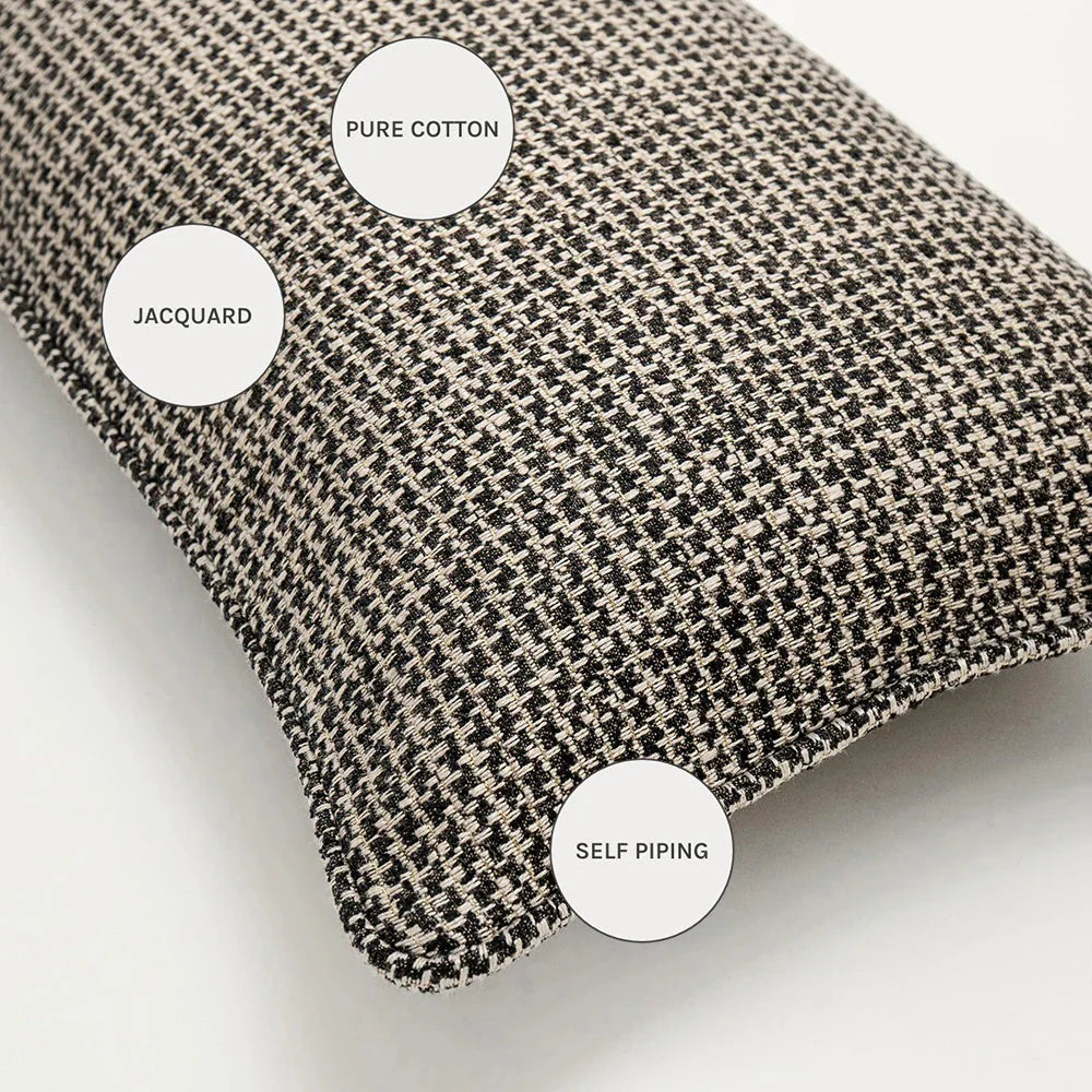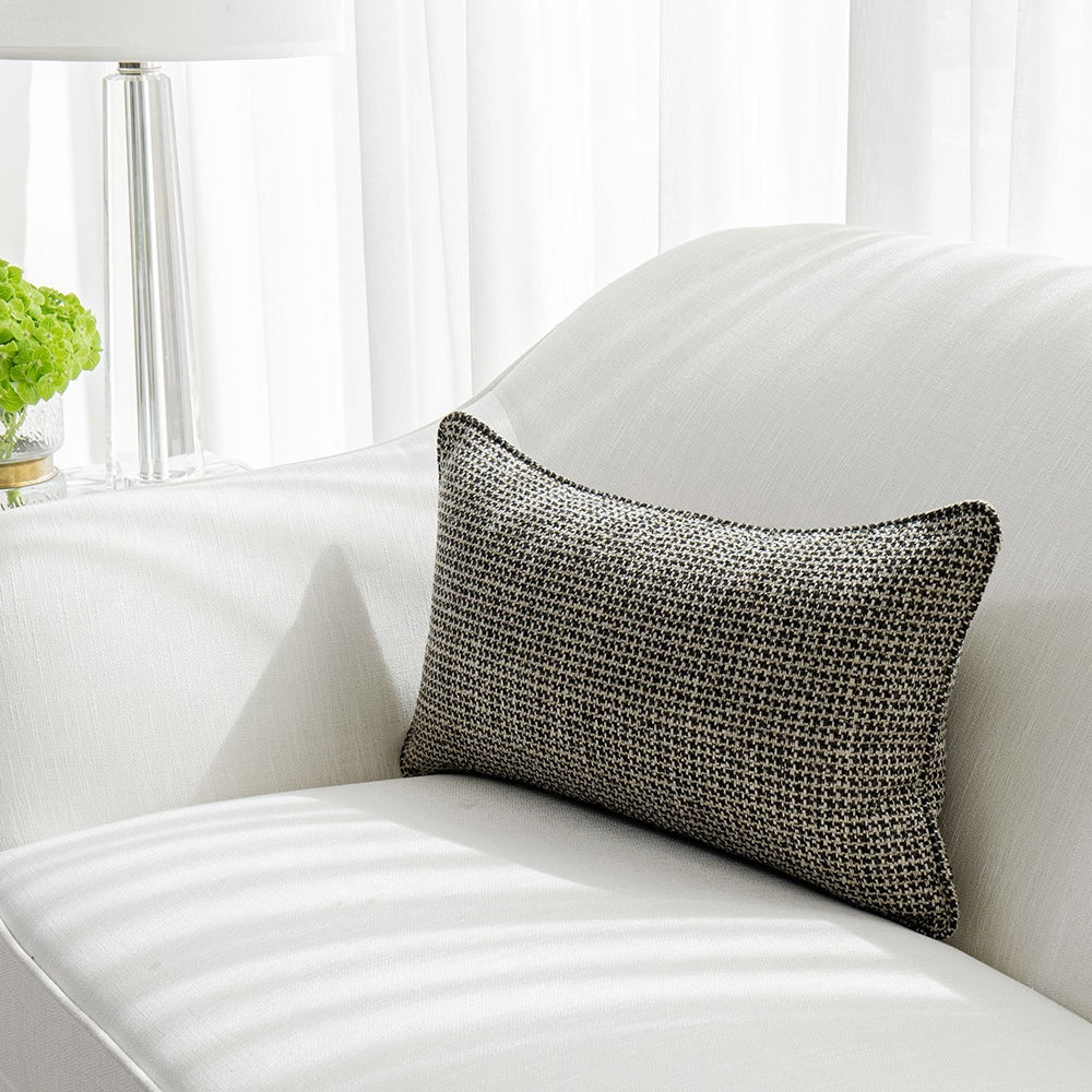 Эта черная и серебряная подушка имеет жаккардовый узор «собачьи зубы». Классическая клетка будет прекрасно сочетаться с традиционным стилем декора или добавит легкий блеск современному интерьеру.