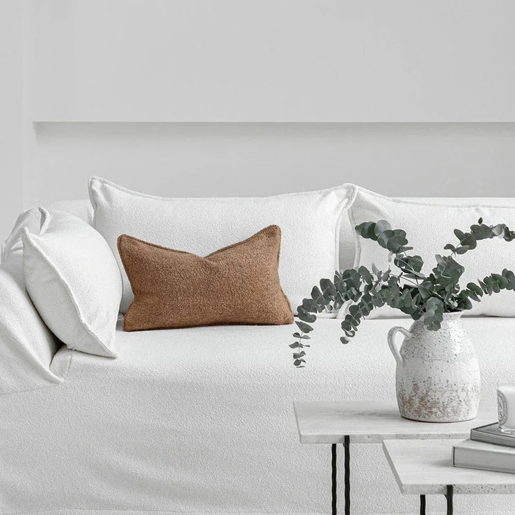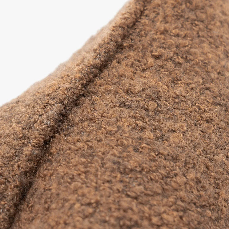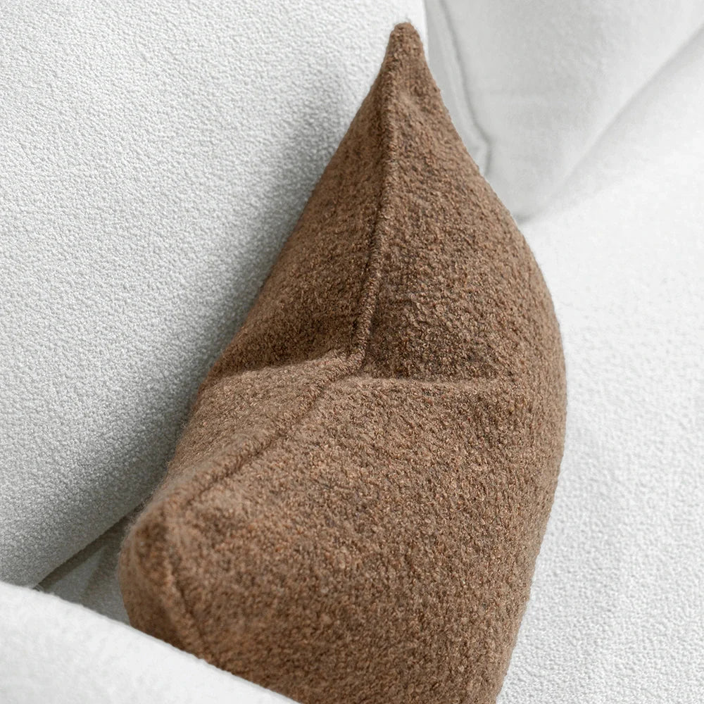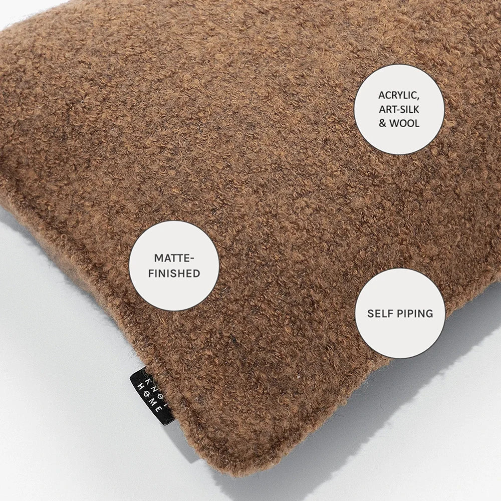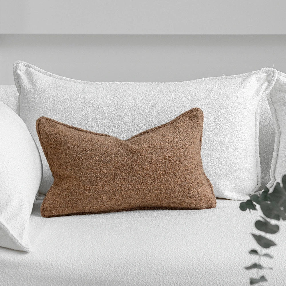 Подушка с богатой текстурой и мягкой, приятной на ощупь букле, которая добавляет тепла и глубины. Плотное плетение создает уютную, изысканную атмосферу, идеально подходящую для многослойного оформления.