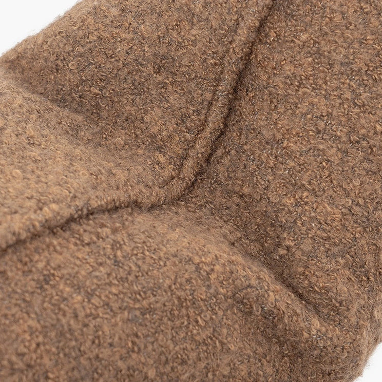 Дизайн: Отличается плотной, фактурной букле с едва заметными переходами оттенков, имитирующими натуральную шерсть. Подкладка в тон ткани обеспечивает цельный вид, создавая изысканный, минималистичный образ, который при этом остается привлекательным.