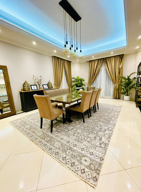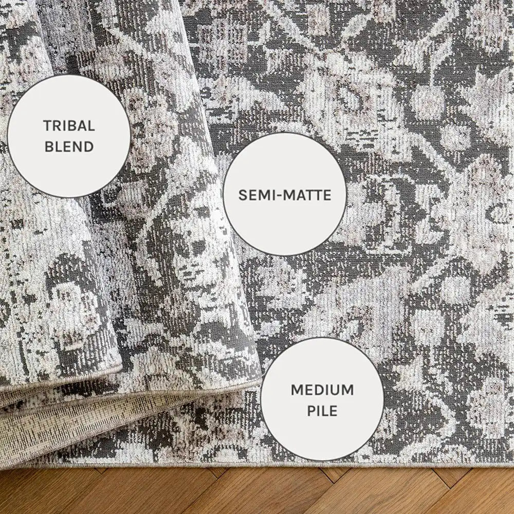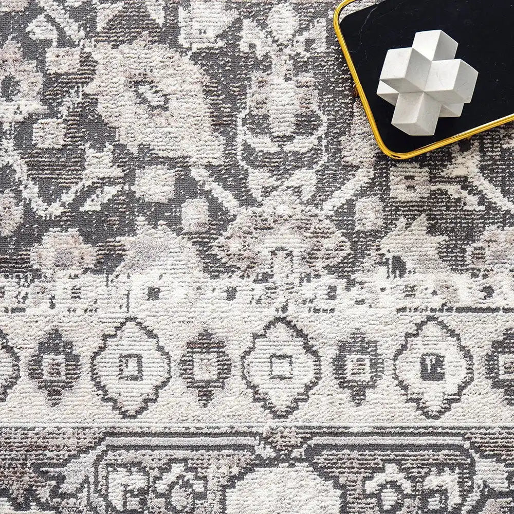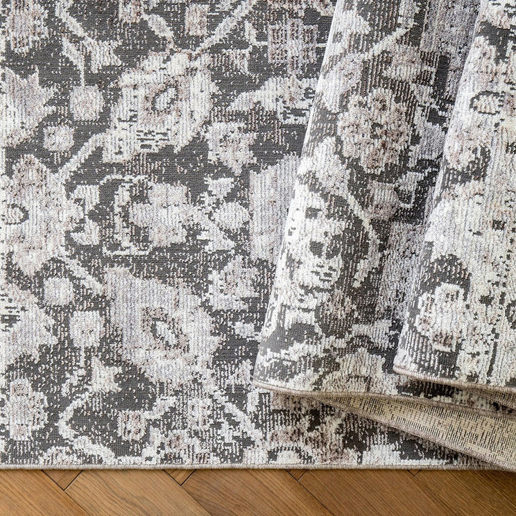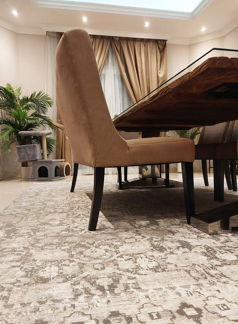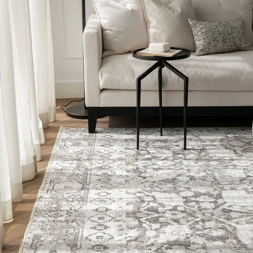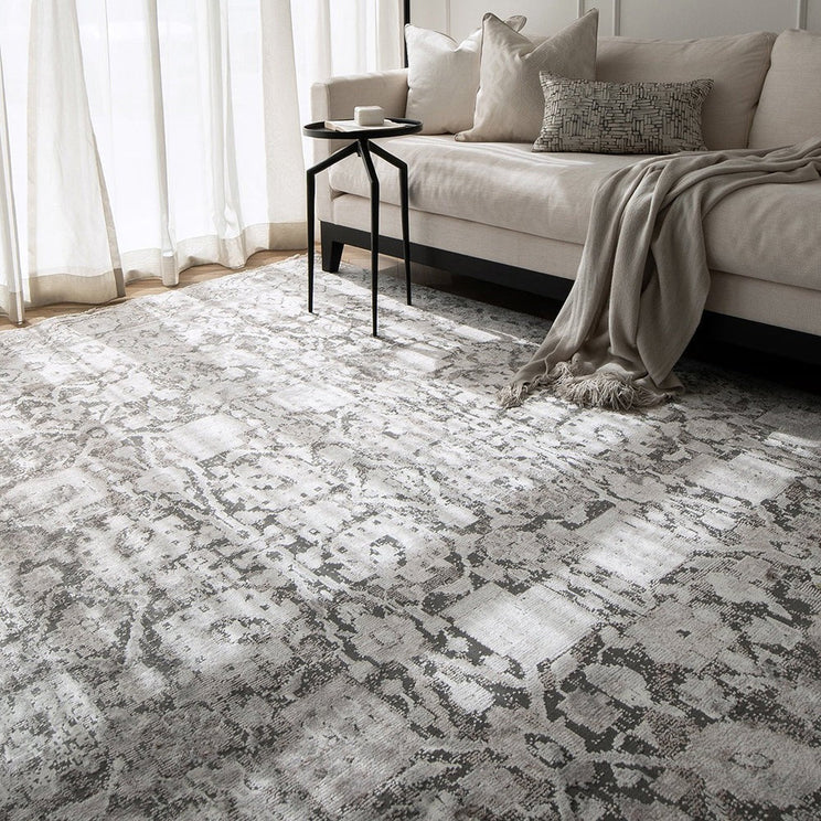 Серая цветовая палитра и современные материалы придают новый взгляд традиционному дизайну ковров.