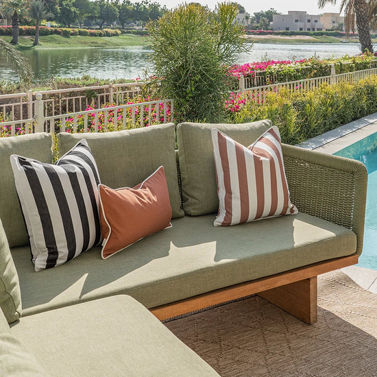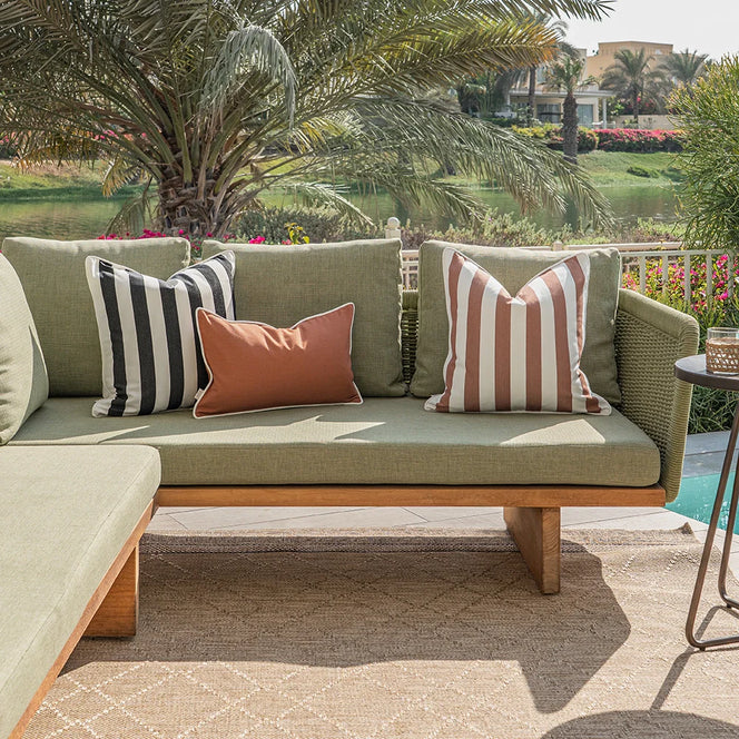 Устойчивые к погодным условиям подушки с наполнителем из волокна обеспечат комфорт и преобразят любое открытое пространство.