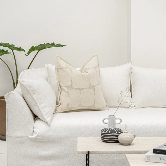 Этот нейтральный диван в бежевых и кремовых тонах привносит свежий взгляд на классический анималистический принт. Прямоугольный узор создает эффект геометрического леопардового рисунка – современный выбор для вашего дивана.