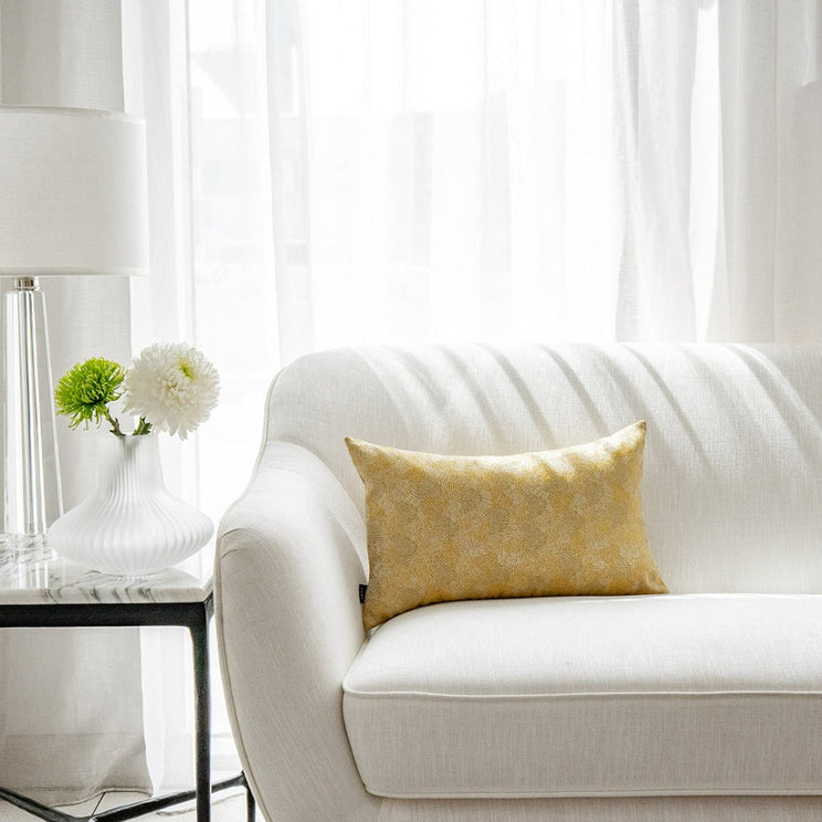 Эта желтая акцентная подушка с рисунком ракушек по всей поверхности соткан из художественного шелка для легкого блеска. Сама по себе или как часть композиции подушек она сделает ваш декор ярким.