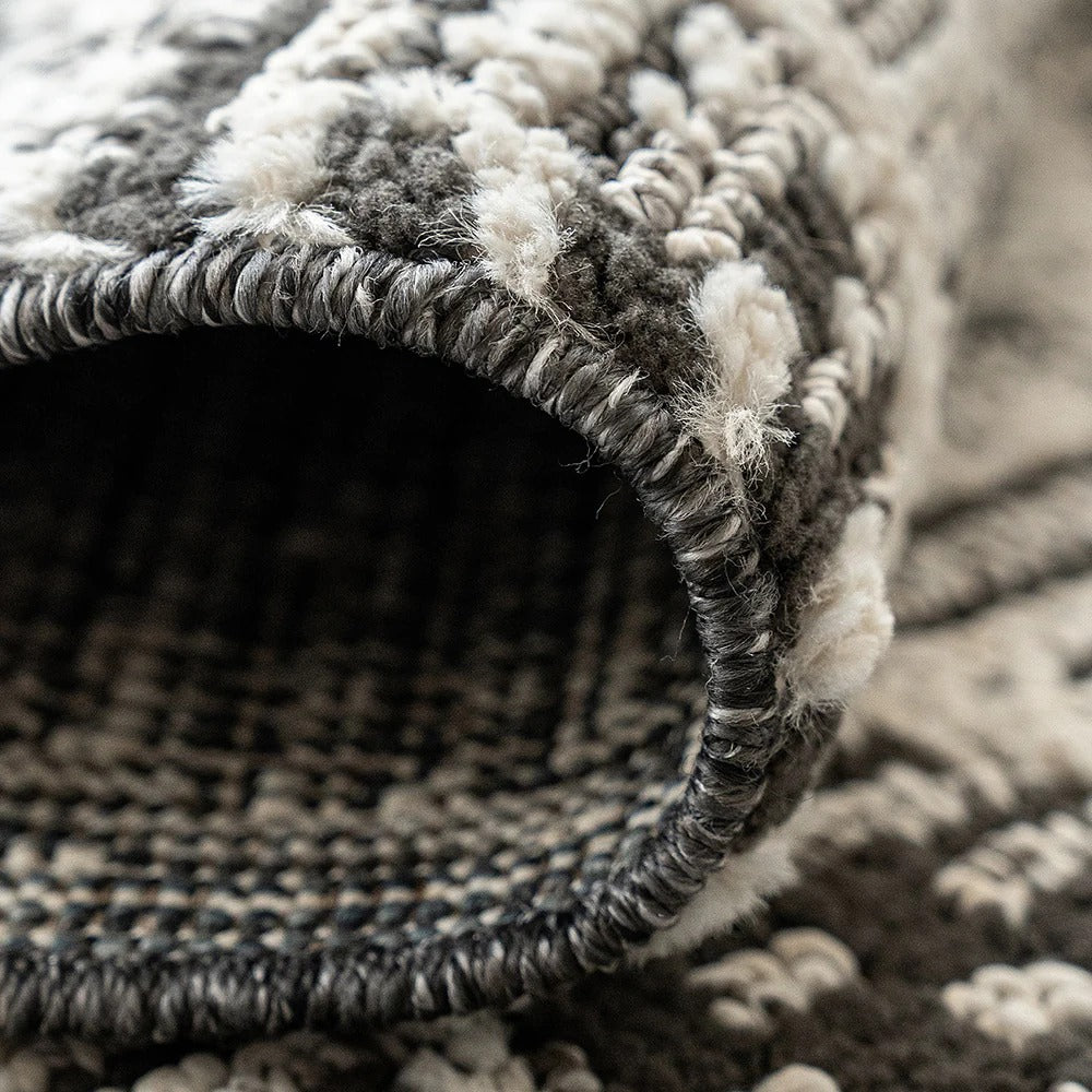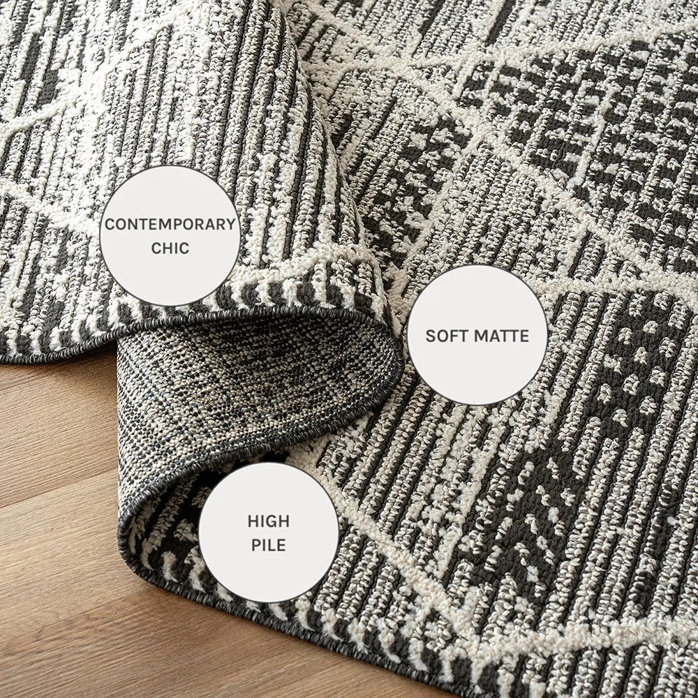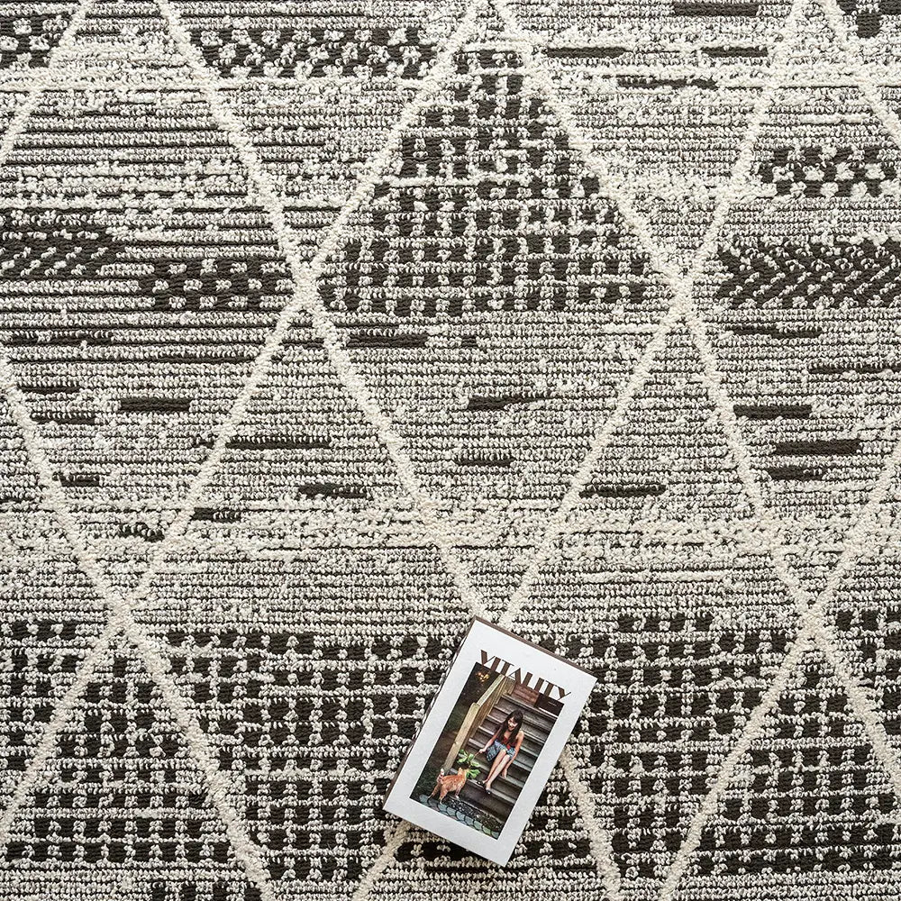 По всему этому потертому ковру танцует ромбовидный узор. Выполненный в шикарных оттенках древесного угля и слоновой кости, он прекрасно дополнит современный интерьер.