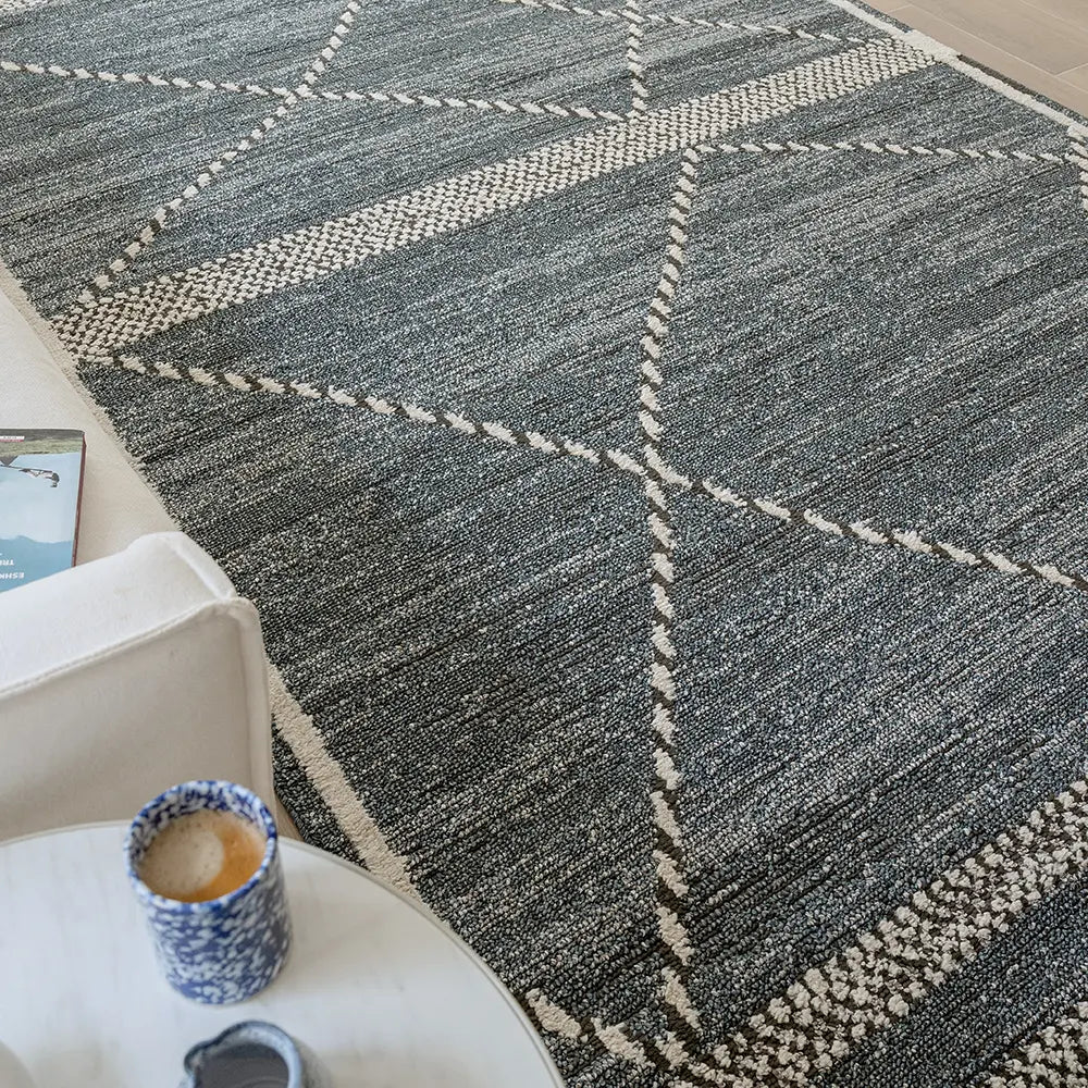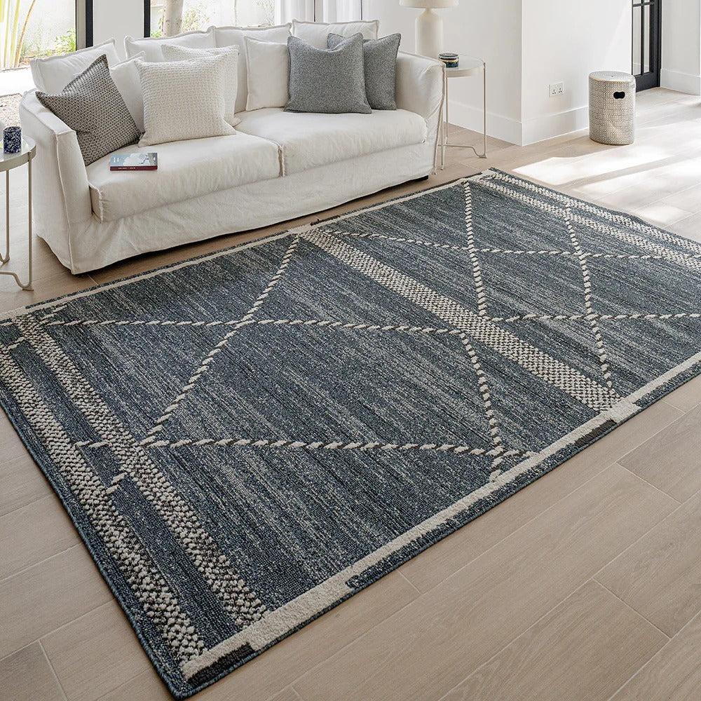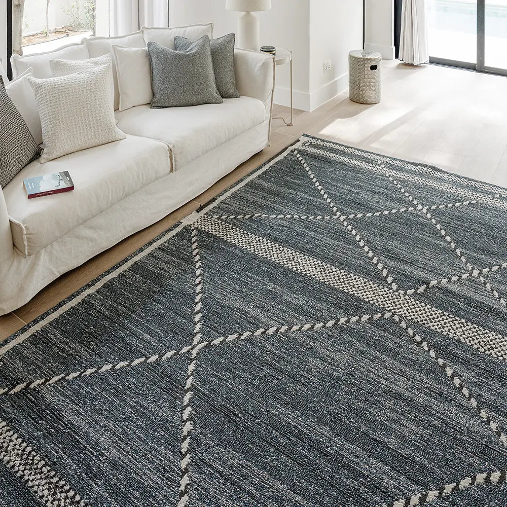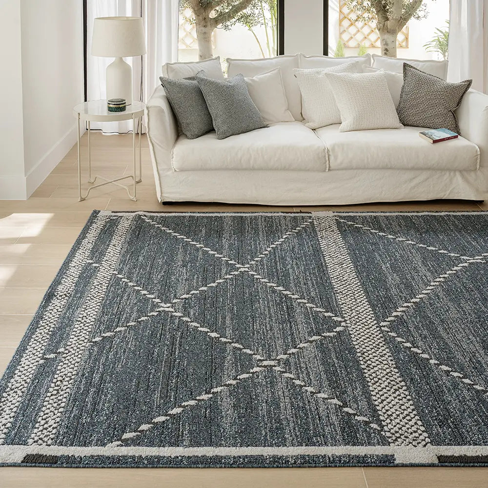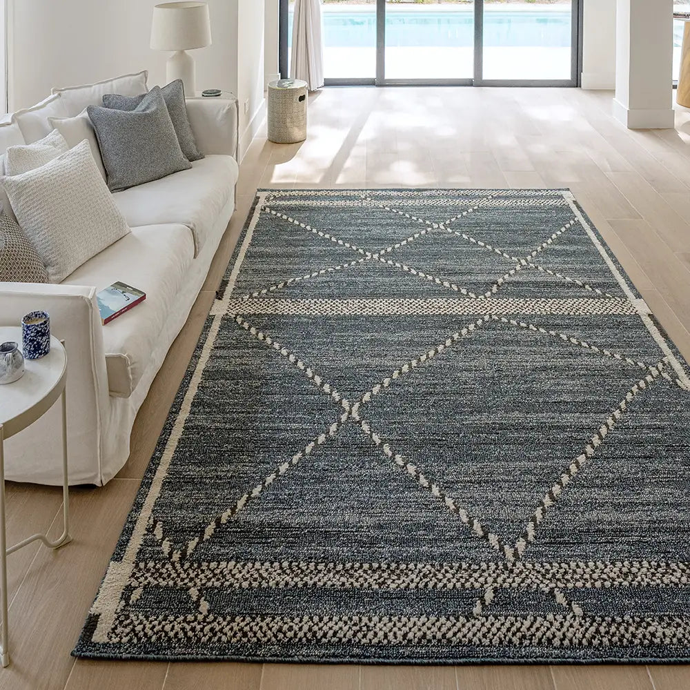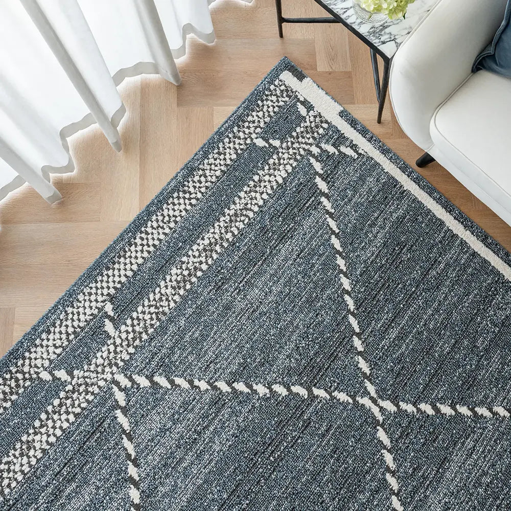 Этот современный ковер синего джинсового цвета так же удобен, как ваши любимые джинсы, — идеальный способ создать непринужденную эстетику в любом уголке вашего дома.
