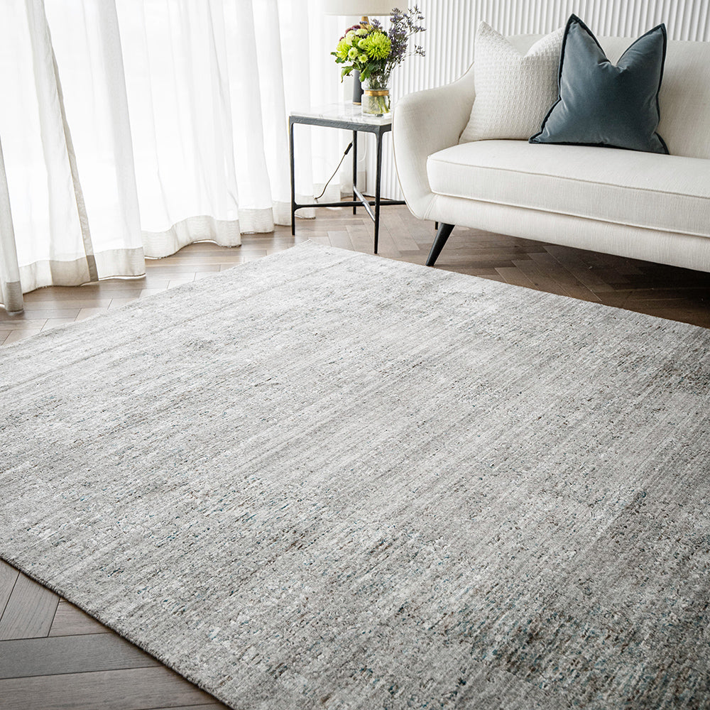 Этот ковер изготовлен из тактильной смеси художественного шелка, чесаной шерсти и хлопка с плотным высоким ворсом, обеспечивающим мягкость.