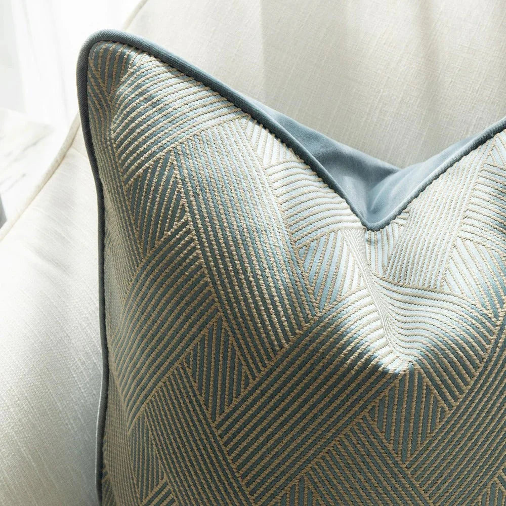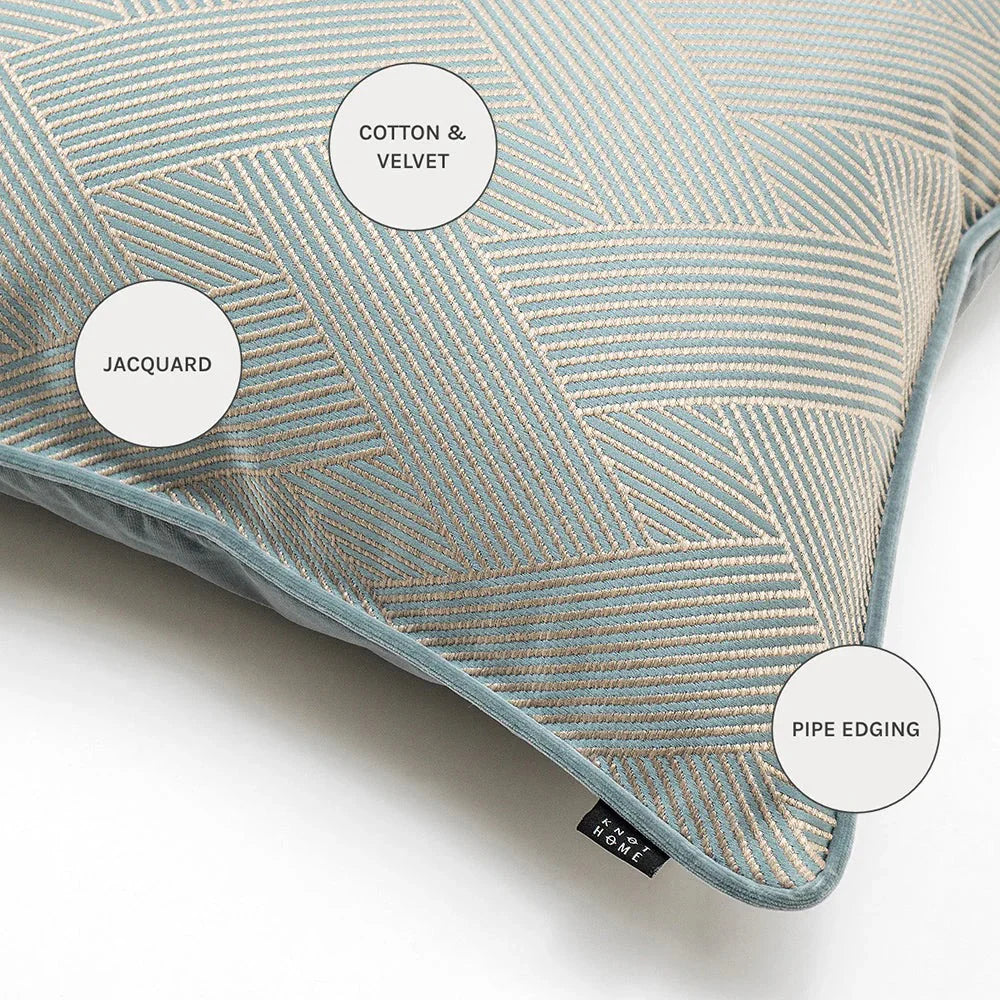 Эта блестящая сине-зеленая подушка станет стильным дополнением к любому дому. Подушка цвета чирок имеет полосы узких линий, образующих крупный тканый узор спереди, с бархатной спинкой для контраста.
