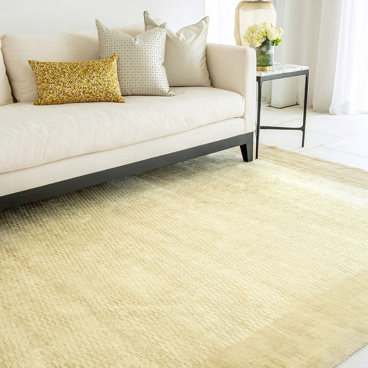 Этот золотой ковер с тонким эффектом омбре добавит дизайнерский лоск современному интерьеру.