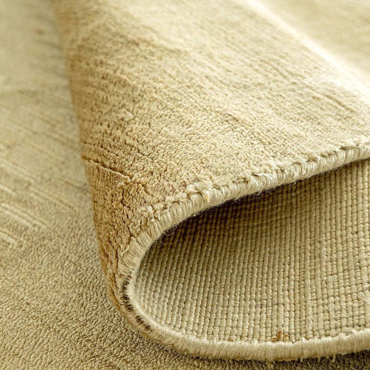Этот текстурированный ковер, изготовленный из полуматового художественного шелка, был обработан вручную, создавая ощущение роскоши.