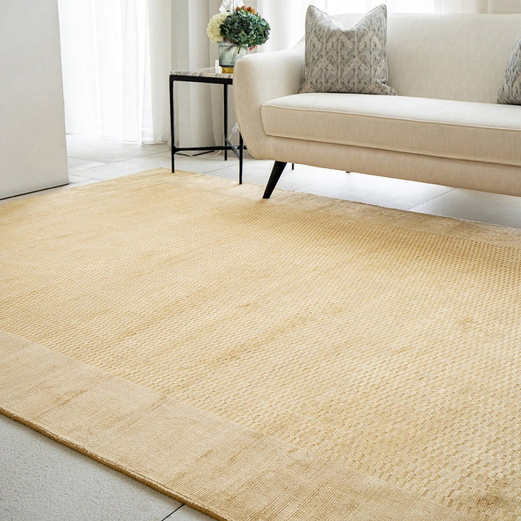 Этот золотой ковер с тонким эффектом омбре добавит дизайнерский лоск современному интерьеру.