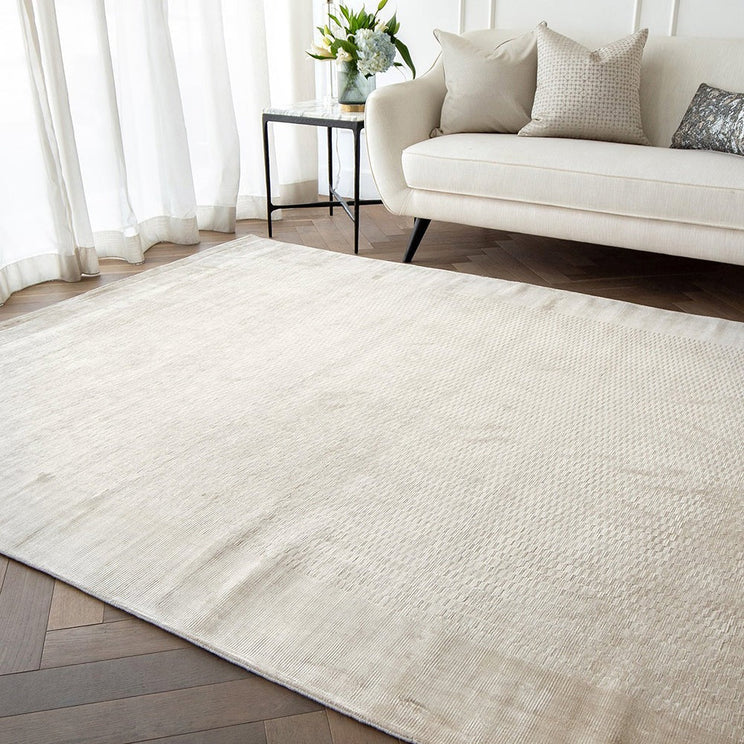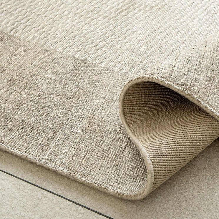 Этот текстурированный ковер, изготовленный из полуматового художественного шелка, был обработан вручную, создавая ощущение роскоши.
