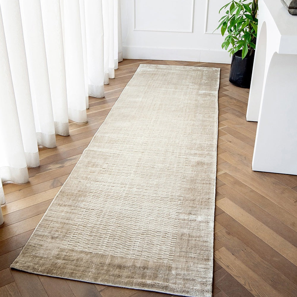 Этот бежевый ковер с тонким эффектом омбре добавит дизайнерский лоск современному интерьеру.