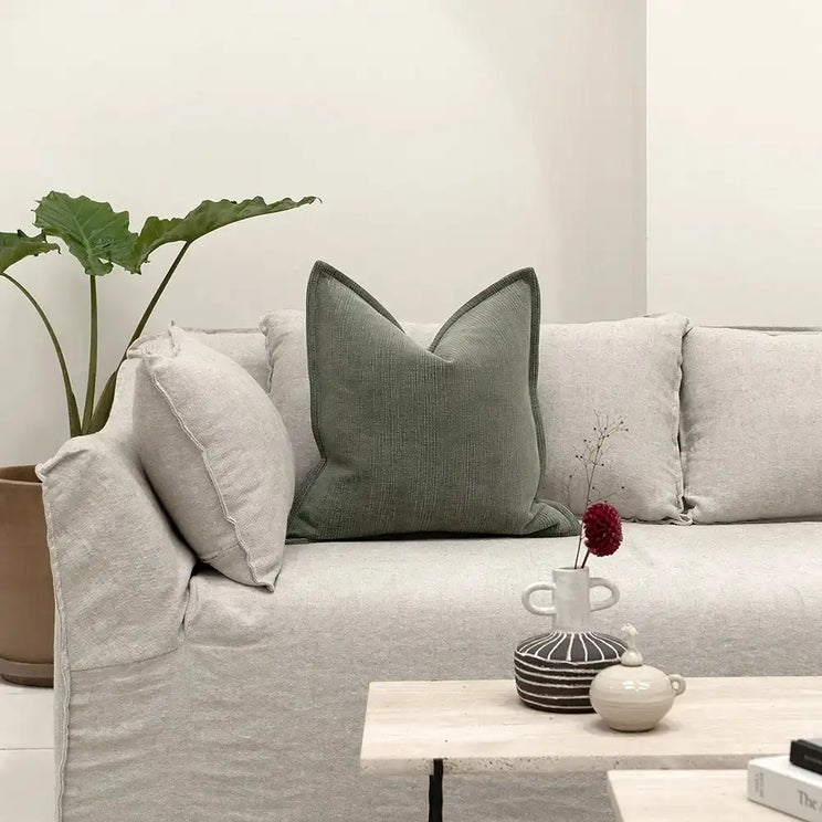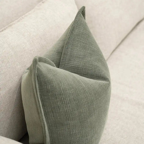 Украсьте свою гостиную этой элегантной однотонной подушкой приглушённого нефритово-зелёного оттенка. Зелёная подушка из чистого хлопка добавит вашей композиции естественности и органичности.