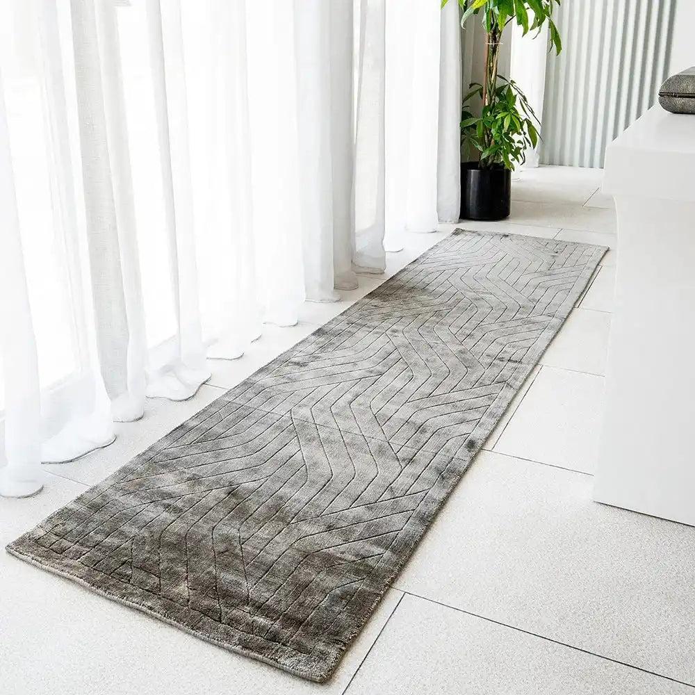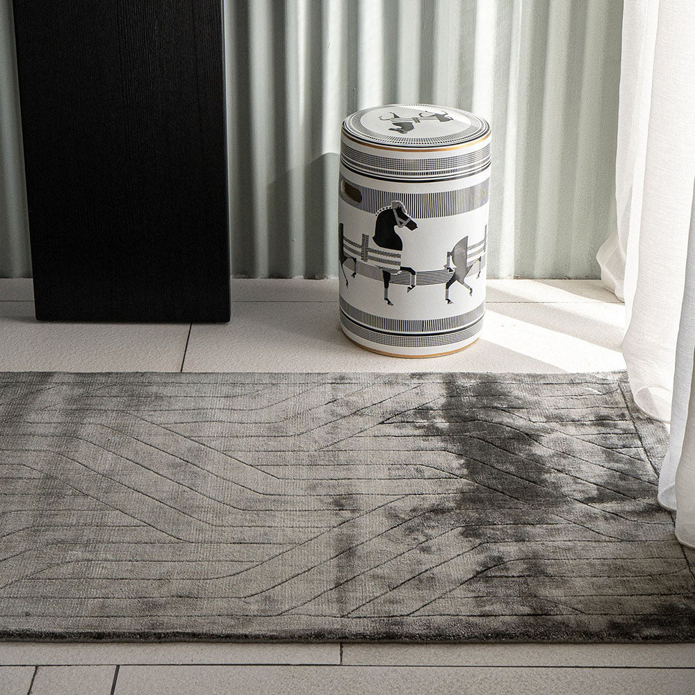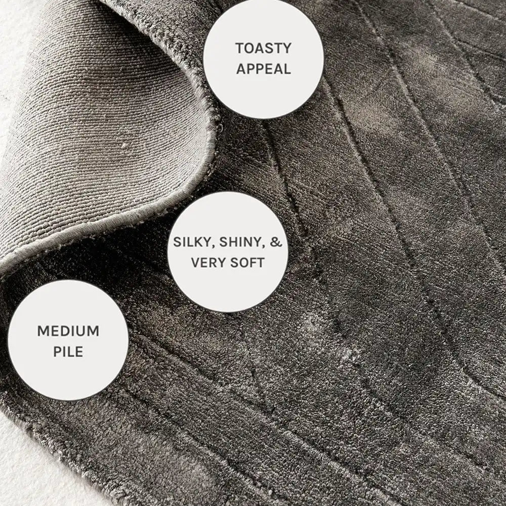Этот серый ковер с ярким блеском и ощущением шелковистости и мягкости — современный способ улучшить ваше жилое пространство.