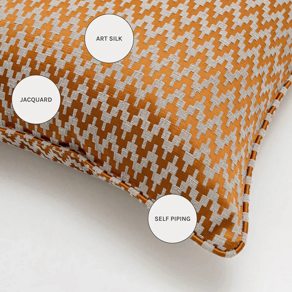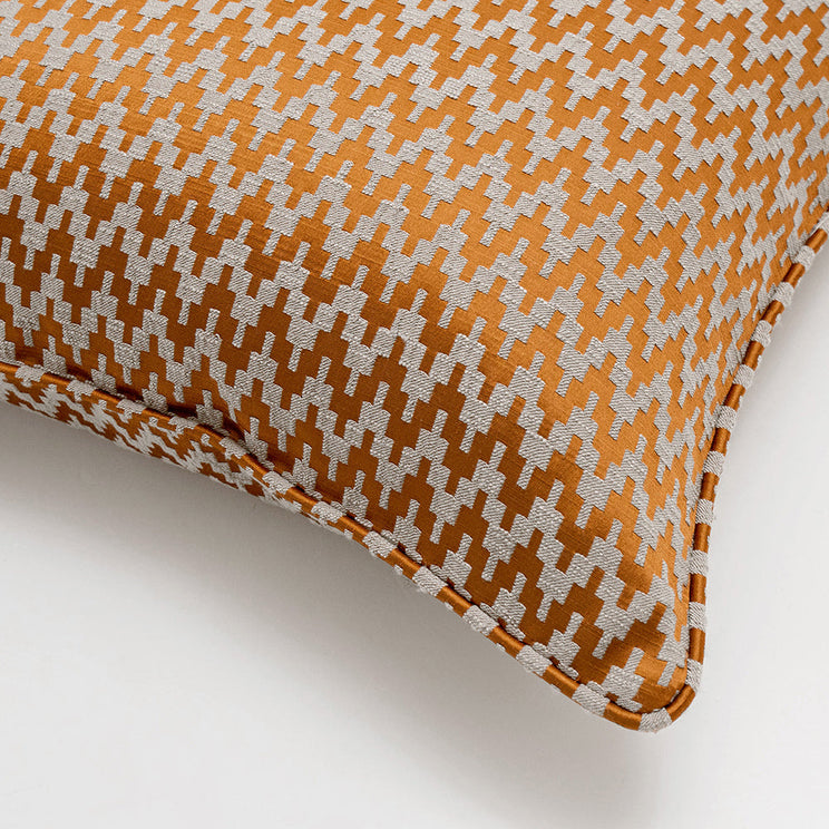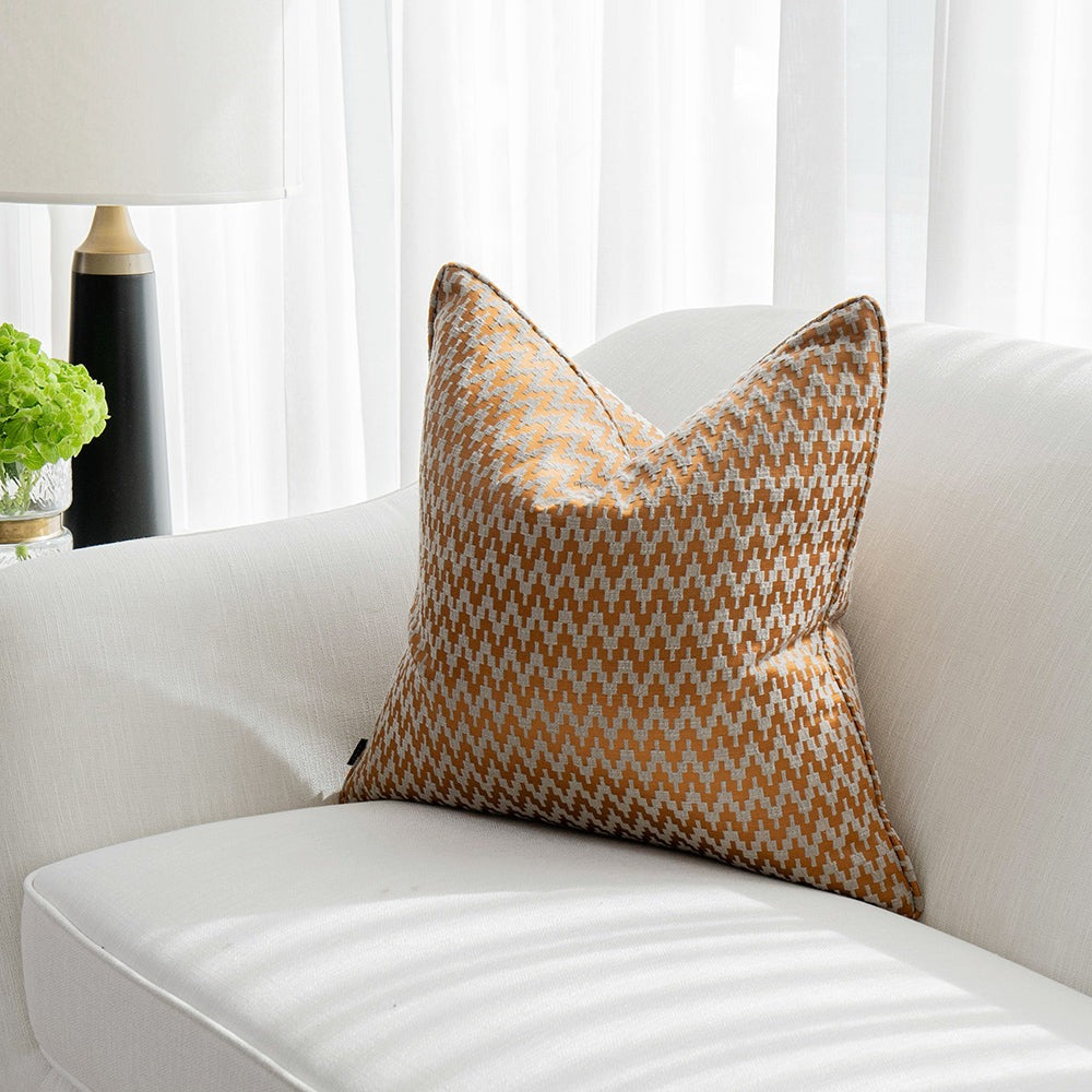 Сделайте заявление с этой оранжевой подушкой. Полуглянцевая подушка имеет пиксельные зигзаги в оранжевом и серебристо-сером цветах, создавая современный узор, который вдохнет новую жизнь в вашу гостиную.