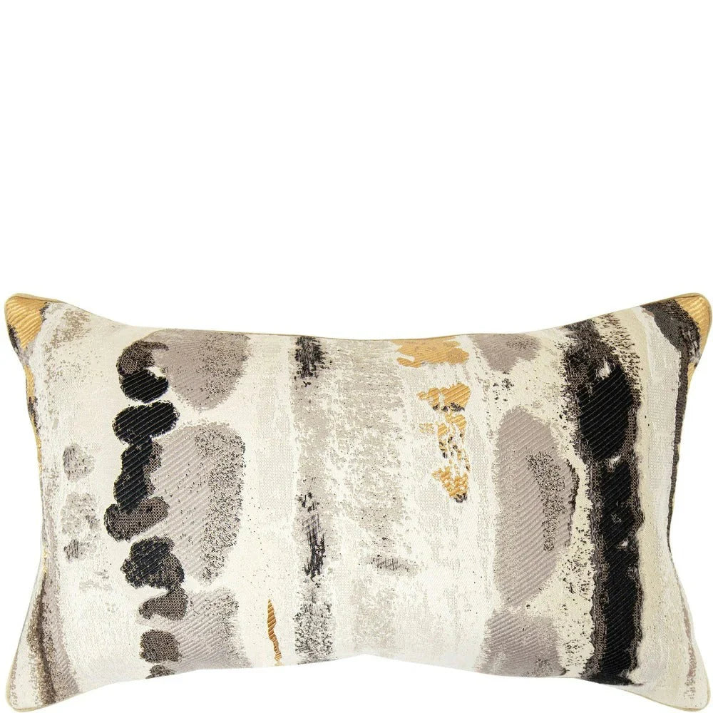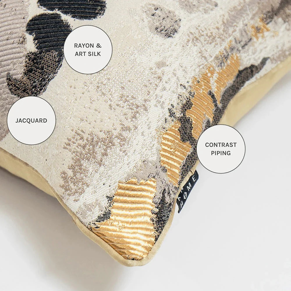 Эта жаккардовая подушка украшена резьбой разных стилей, которая придает текстуру ее абстрактному дизайну. Акцентная подушка представлена в универсальной цветовой палитре и подойдет к любому стилю интерьера.