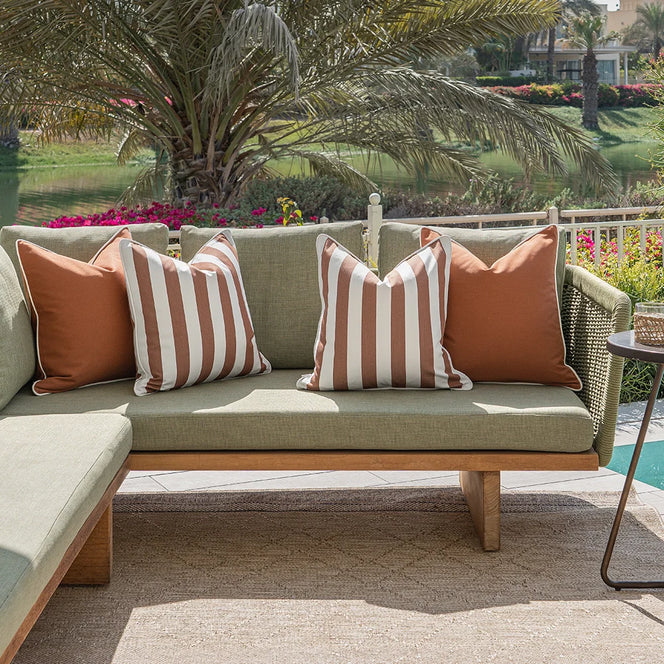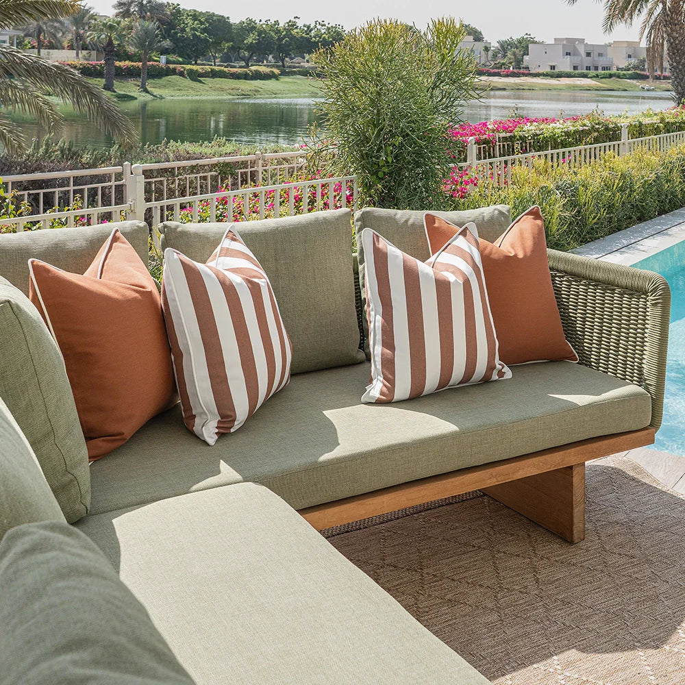 Устойчивые к погодным условиям подушки с наполнителем из волокна обеспечат комфорт и преобразят любое открытое пространство.