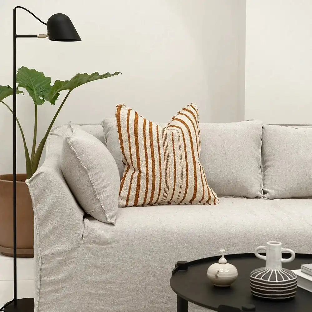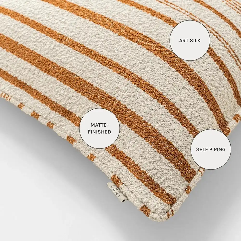 И расслабьтесь: эта кремово-карамельно-коричневая подушка украшена разноцветными полосками, создающими невероятно расслабляющую атмосферу. Эта полосатая подушка из искусственного шёлкового жаккарда отличается удивительно мягкой текстурой.