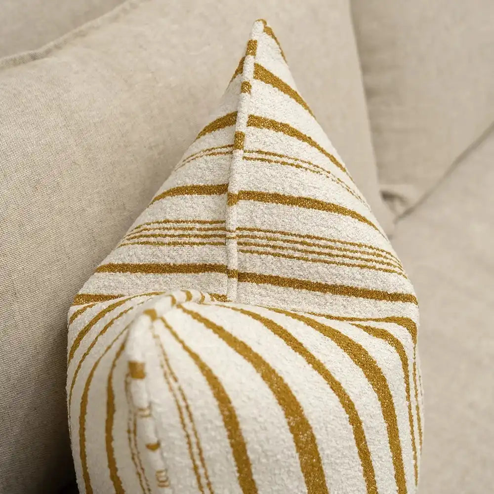 Эта полосатая подушка невероятно мягкая на ощупь и изысканной цветовой палитры – идеальный выбор для любого случая. Кремово-оливково-зелёная подушка станет стильным и комфортным дополнением к вашему дивану.