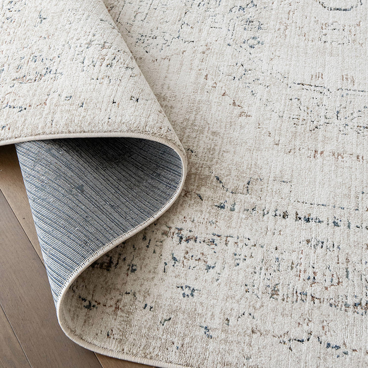 Наш ковер Sheldon в винтажном стиле с выцветшим серым узором и контрастной бахромой придает современный вид классическому дизайну.