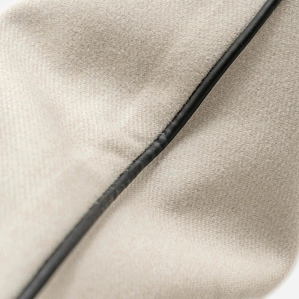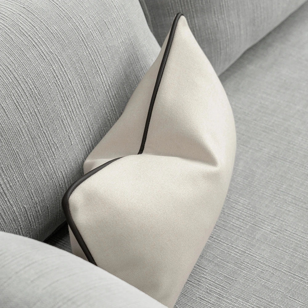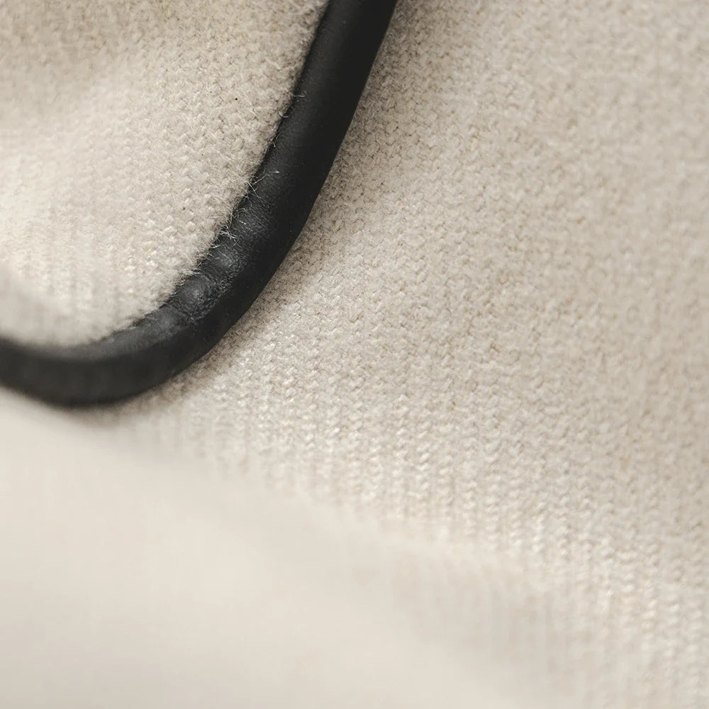 Дизайн: Чистая, не имеющая рисунка текстура мериносовой шерсти, обрамленная тонкой окантовкой из угольно-серой искусственной кожи, придает подушке четкий, аккуратный контур, сохраняя при этом спокойный и изысканный вид.