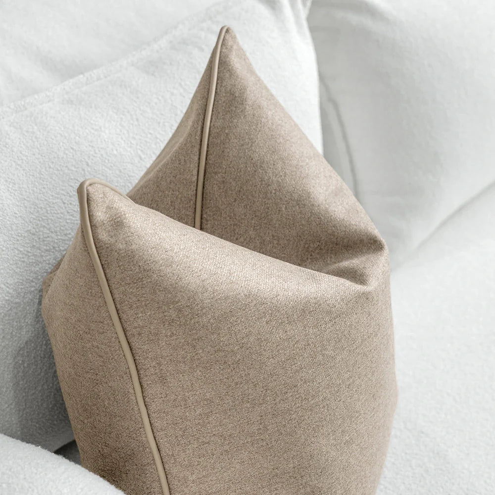 Изготовленная из роскошной смеси тончайшей мериносовой шерсти и натуральных волокон, эта подушка обладает гладкой, мягкой текстурой и изысканной меланжевой глубиной. Отделанная кантом из искусственной кожи, она сочетает в себе сдержанную элегантность и вневременное мастерство.