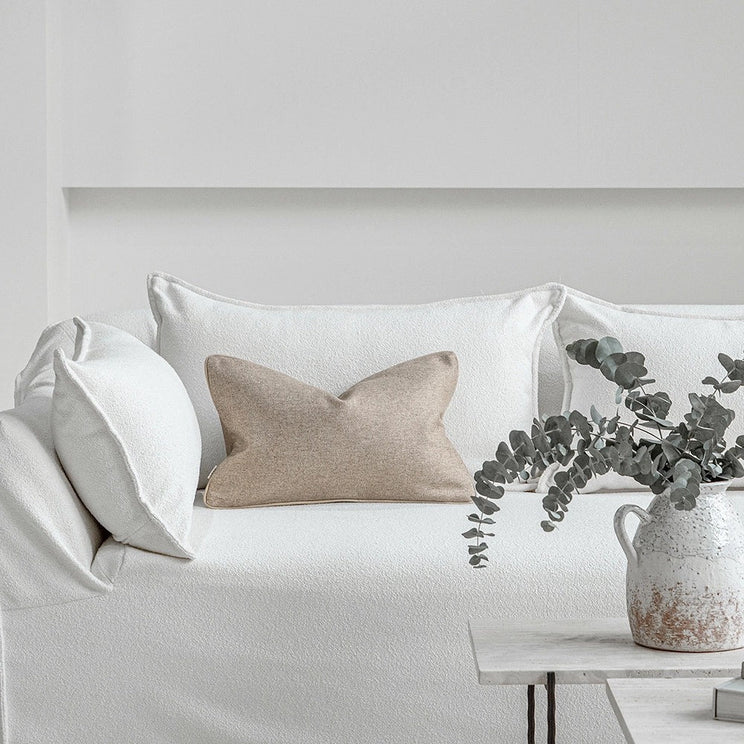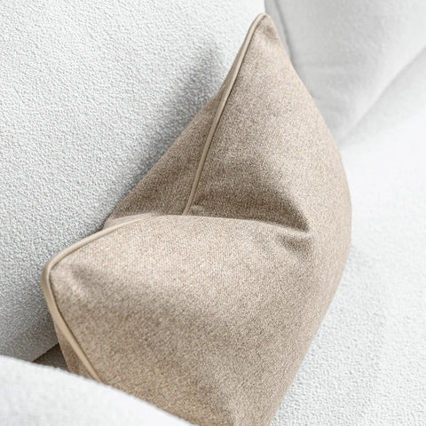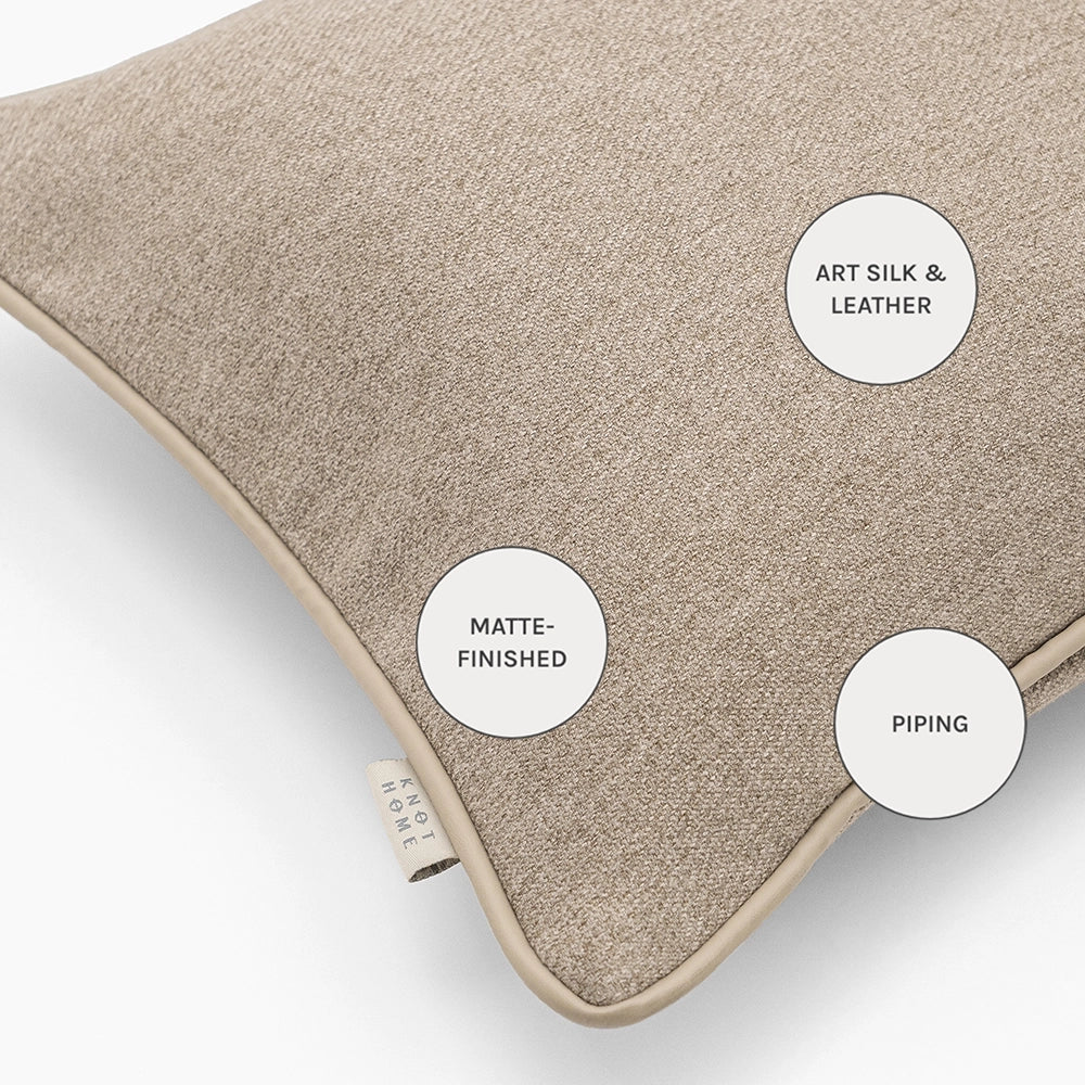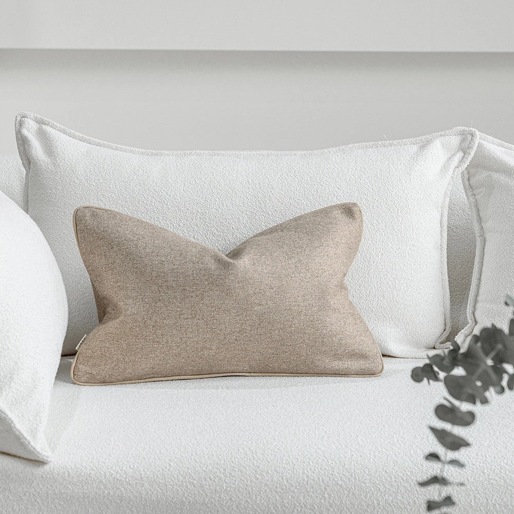 Изготовленная из роскошной смеси тончайшей мериносовой шерсти и натуральных волокон, эта подушка обладает гладкой, мягкой текстурой и изысканной меланжевой глубиной. Отделанная кантом из искусственной кожи, она сочетает в себе сдержанную элегантность и вневременное мастерство.