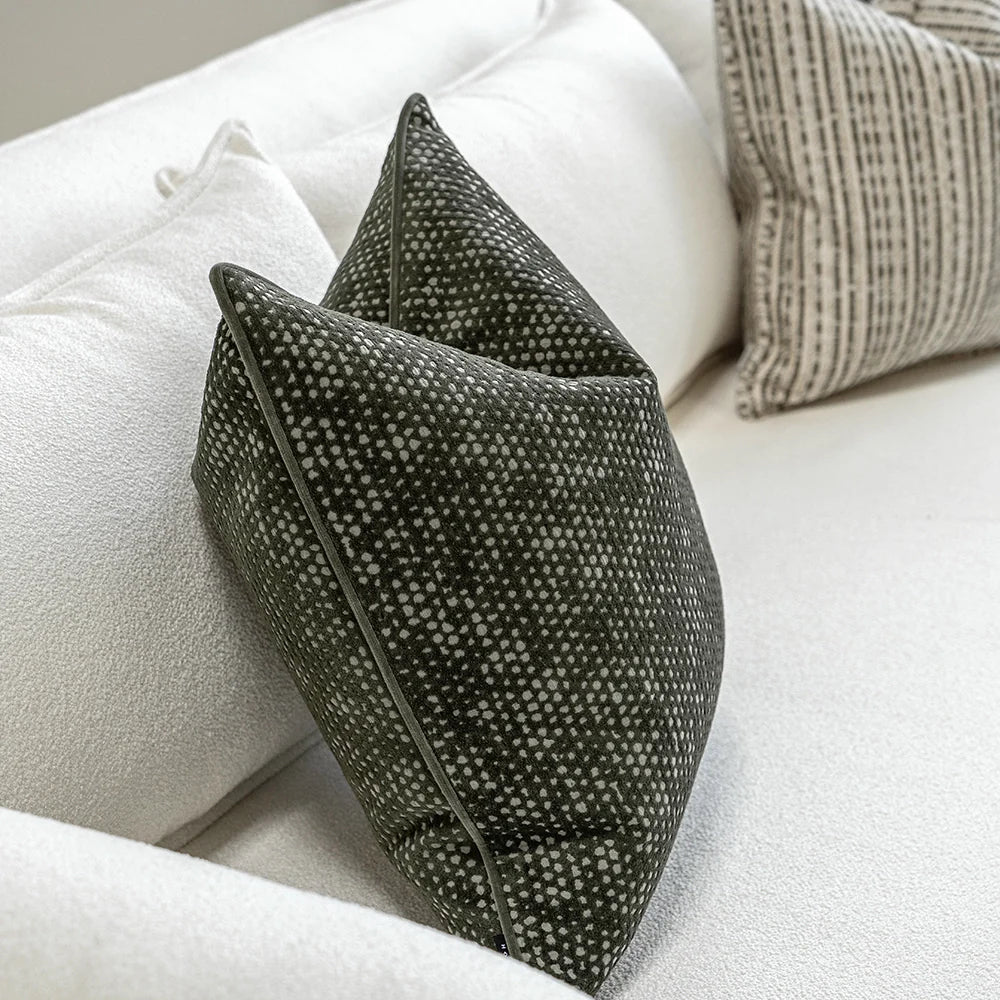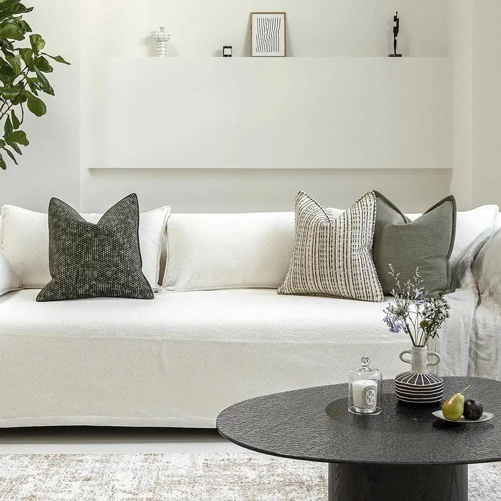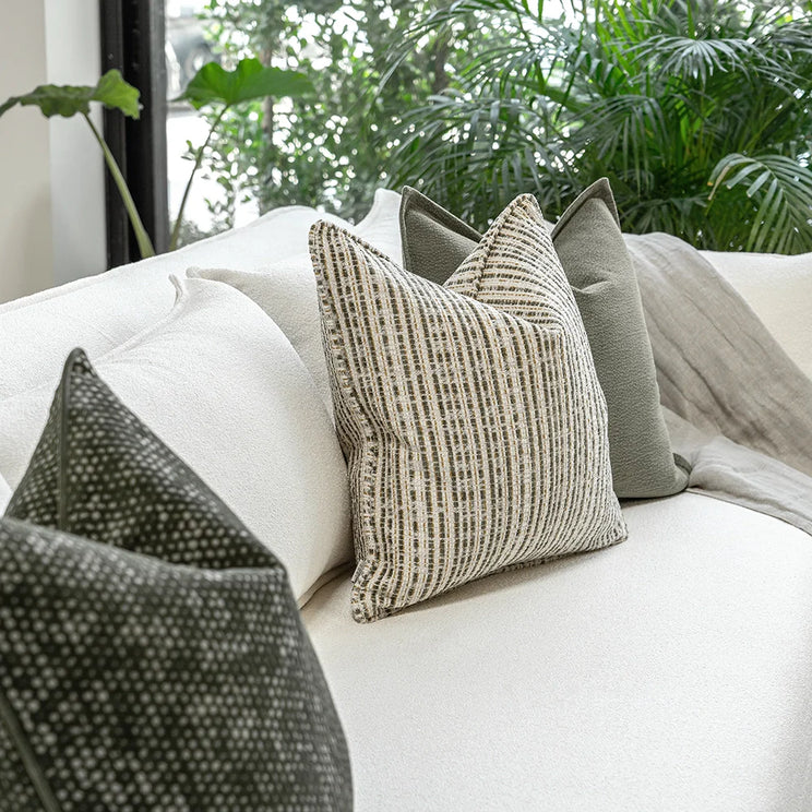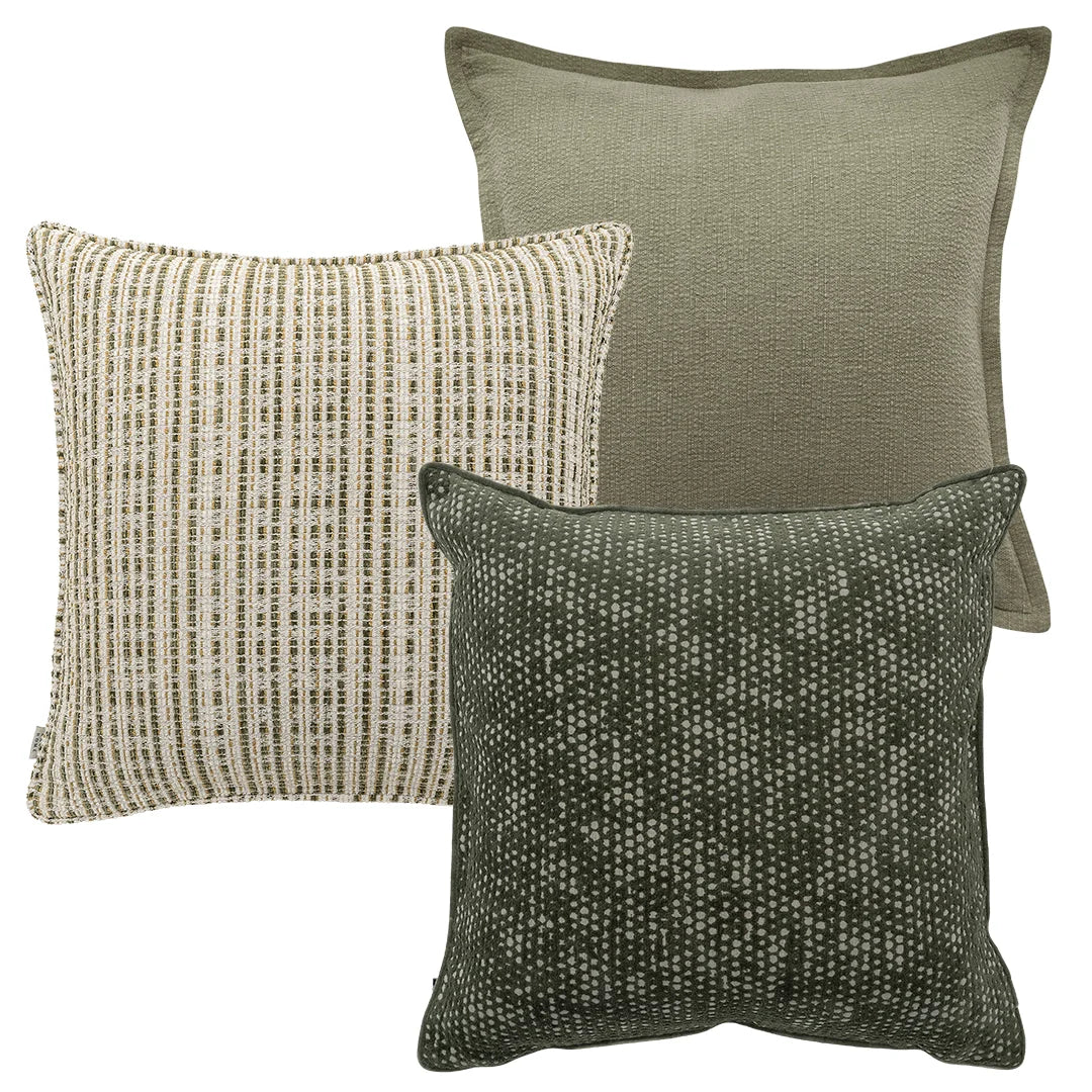 Превратите свой дом в тихий уголок с этим зелёным комплектом подушек. В него входят однотонные и узорчатые подушки в нефритовых, оливковых и шалфейных оттенках, вдохновлённые природой.