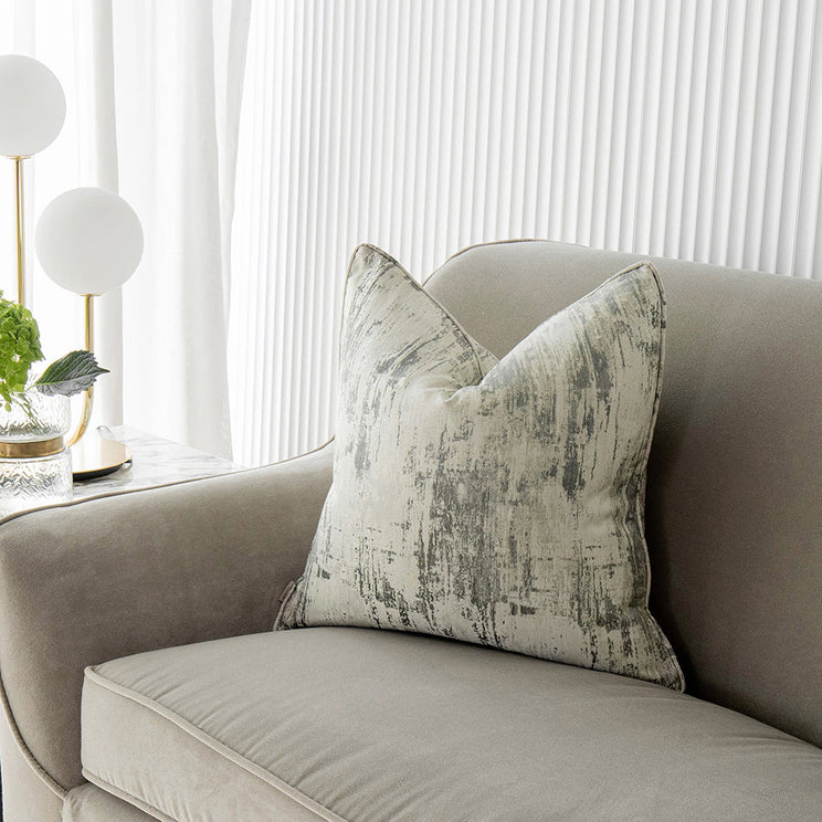 Эта полублестящая подушка имеет выцветший рисунок мазков кисти для винтажного стиля. В сером и кремовом цветах эта универсальная подушка обязательно добавит немного дизайнерского шика в любой стиль декора.