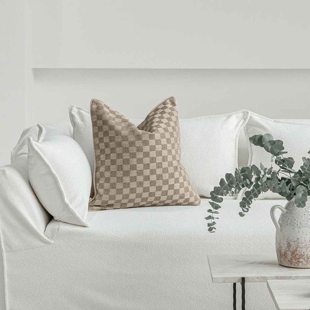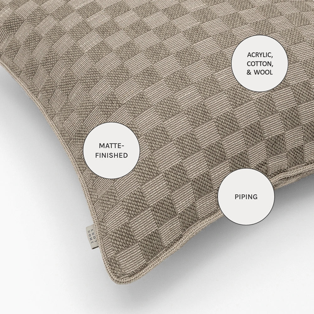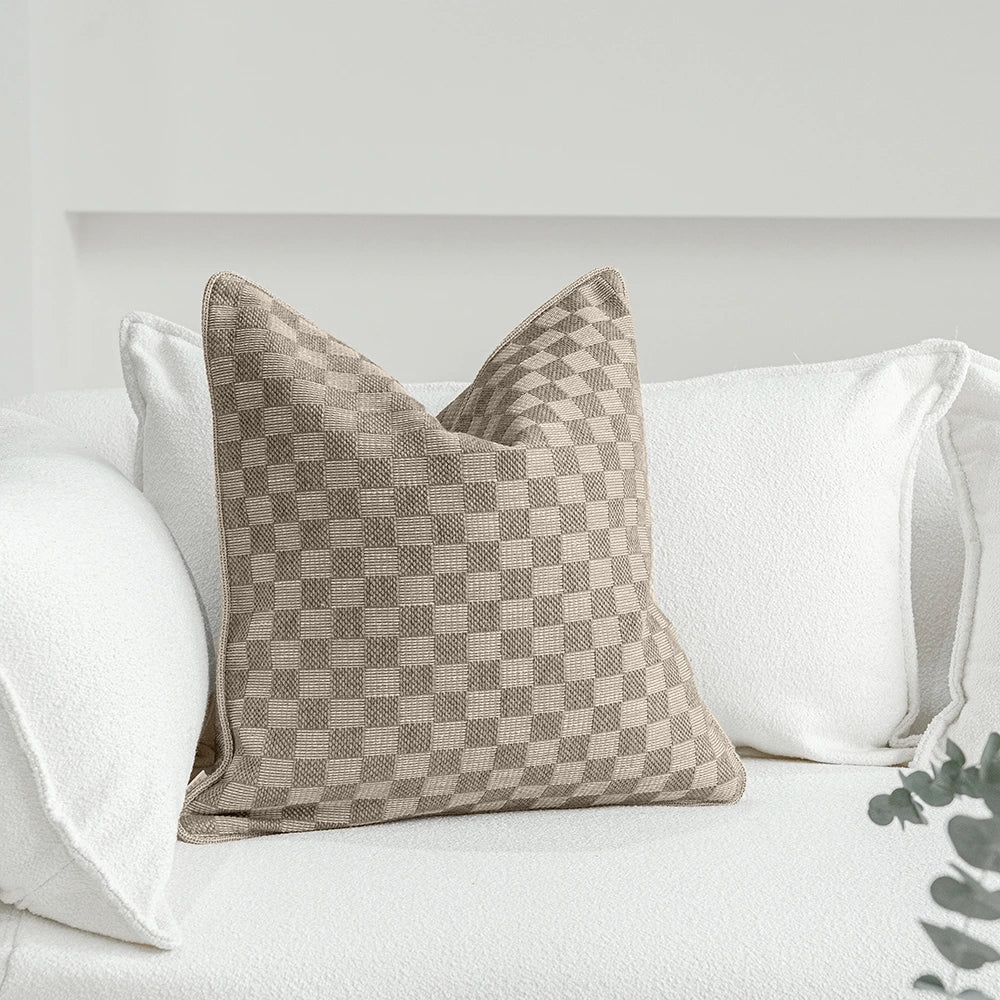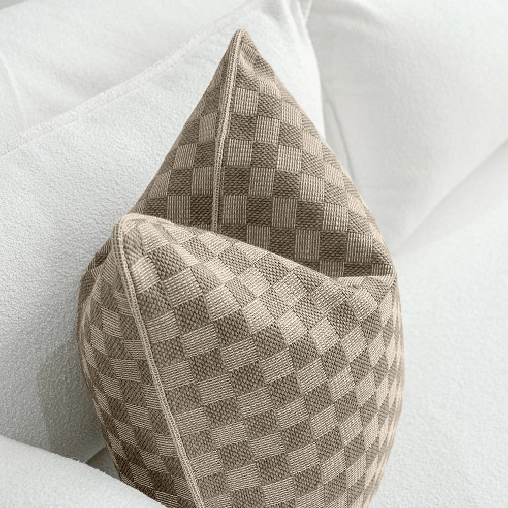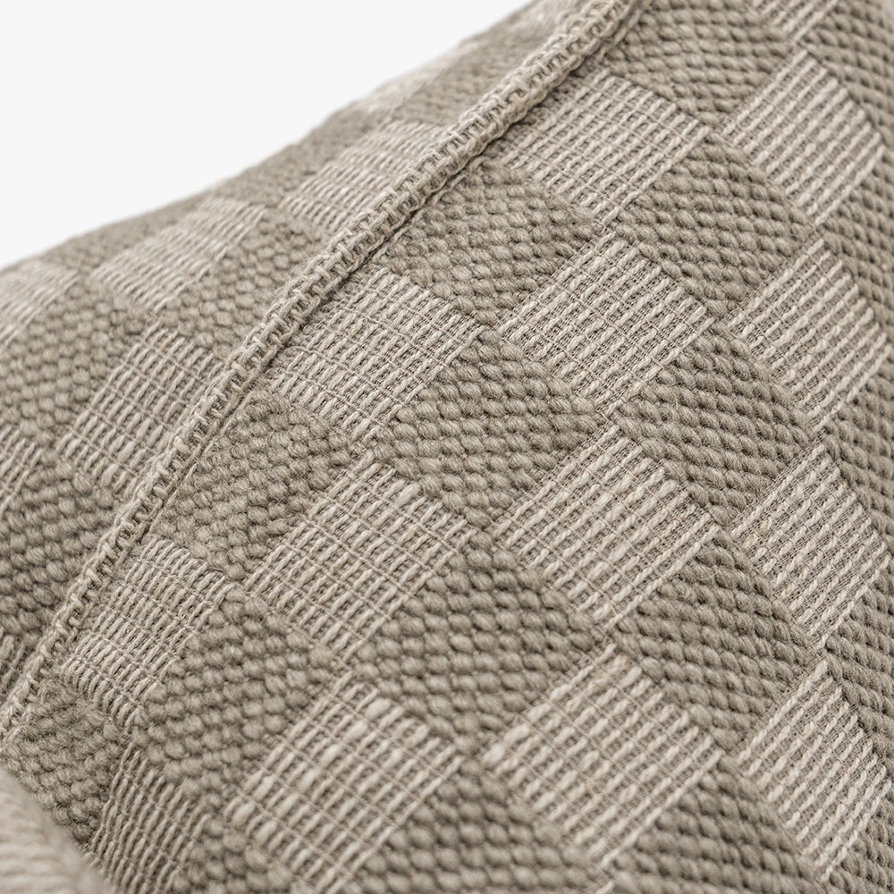Дизайн: Современный шахматный узор, чередующийся между гладкими и приятными на ощупь квадратами, создает тонкую глубину. Узор полностью соткан, а не напечатан, что придает ему богатый, ремесленный характер. Отделка краем в тон ткани создает чистый, гармоничный вид, который органично вписывается в многослойные интерьеры.