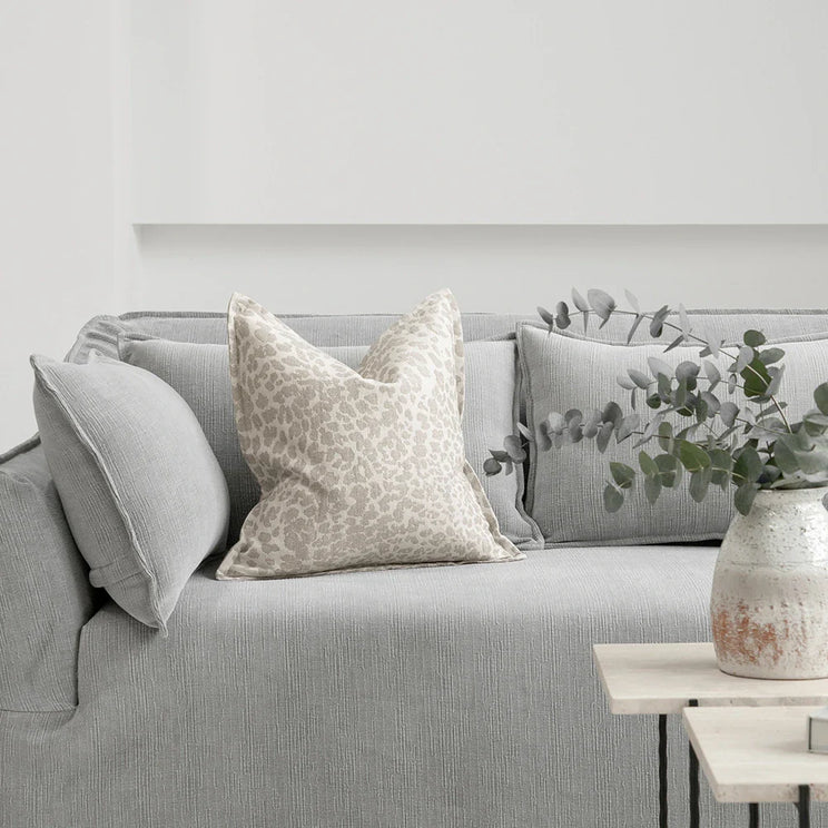 Красивая фактурная подушка с мягким, тональным узором, который естественно сливается с тканью. Ее нежная, нейтральная цветовая палитра добавляет спокойствия и характера, не перегружая пространство, что делает ее легким и изысканным дополнением к любому интерьеру.