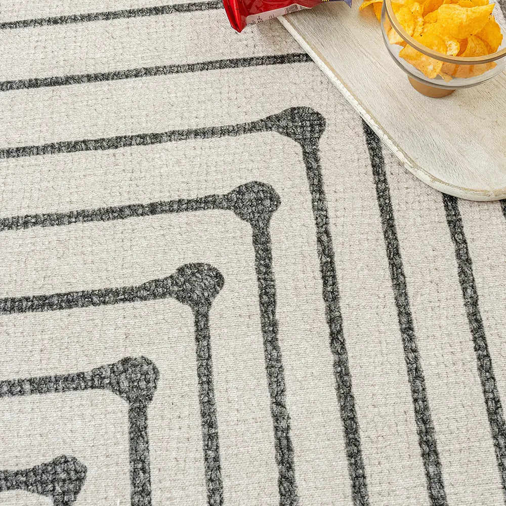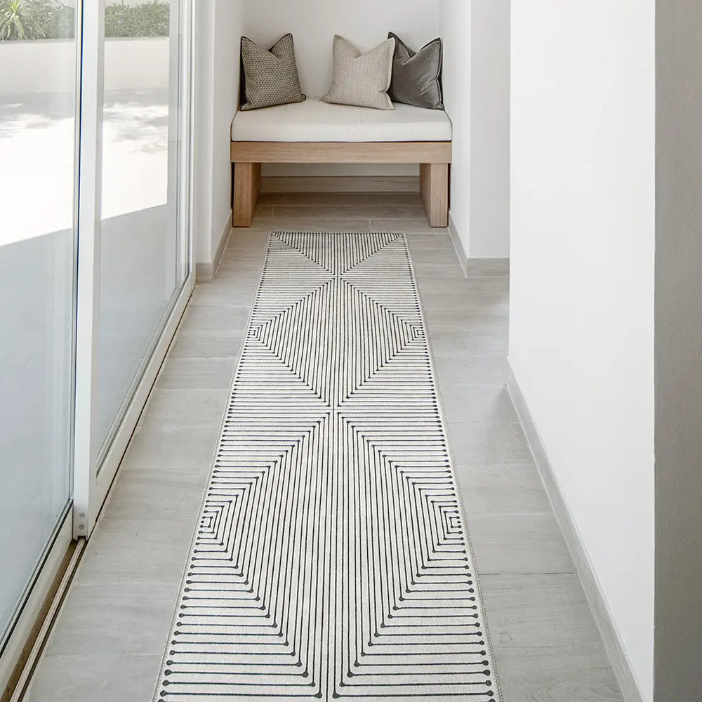 Этот черно-белый ковер создает смелый фокус, который дополнит любую цветовую палитру.
