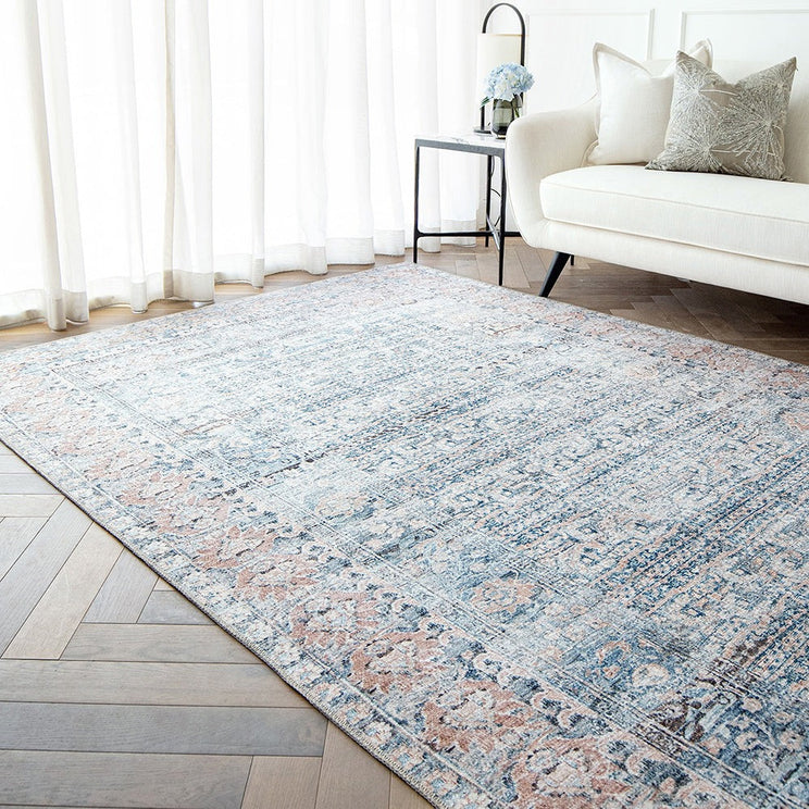 Этот выцветший ковер, изготовленный из современных волокон, имеет классический дизайн, обновленный для современных домов.