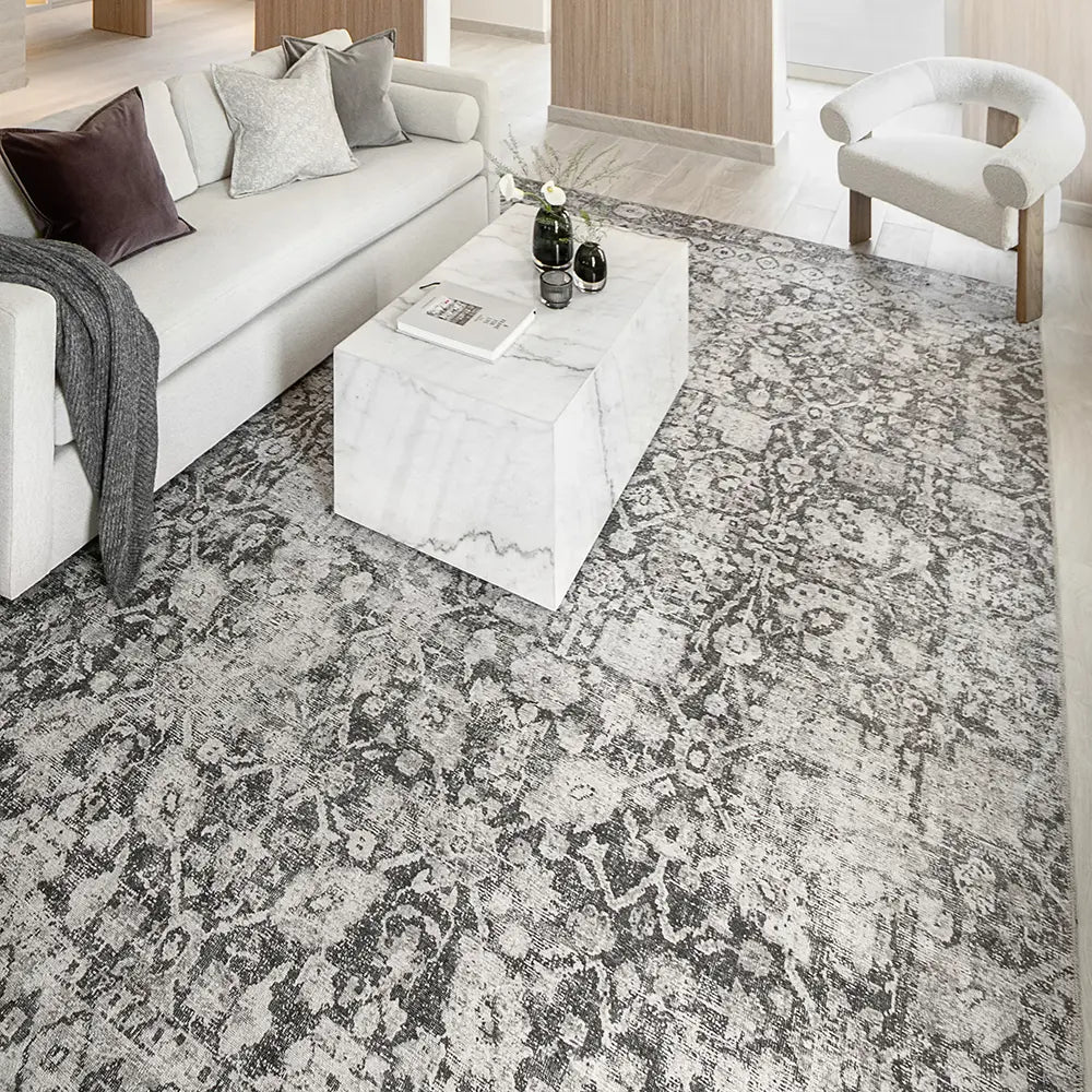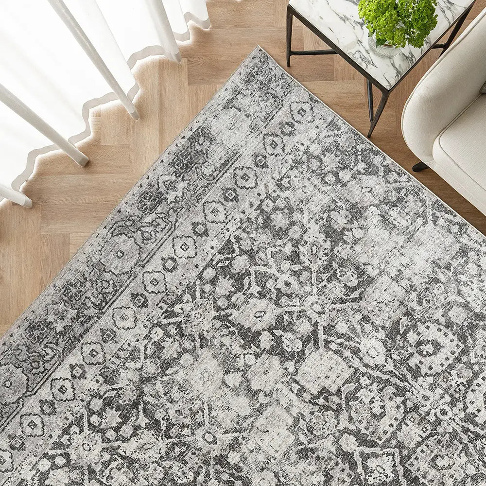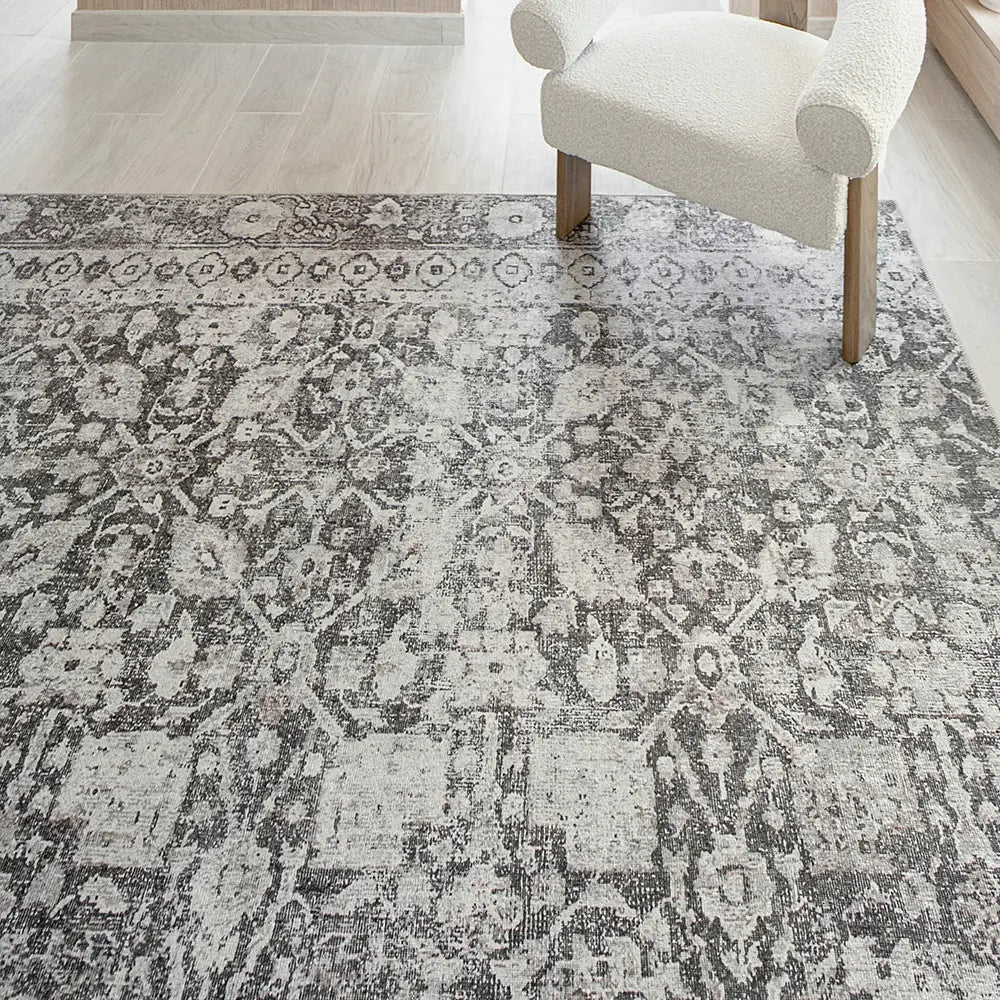 Живой узор из ромбов и цветов танцует на этом сером и угольном ковре. Идеальное сочетание винтажного и современного, этот серый ковер — мгновенное обновление для вашего дома.