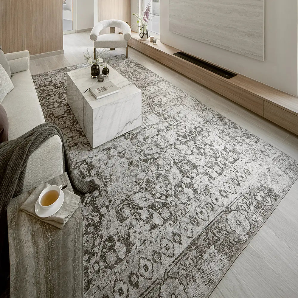 Этот выцветший ковер, изготовленный из современных волокон, представляет собой классический дизайн, адаптированный для современных домов.